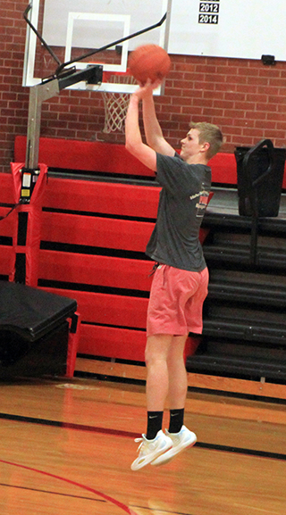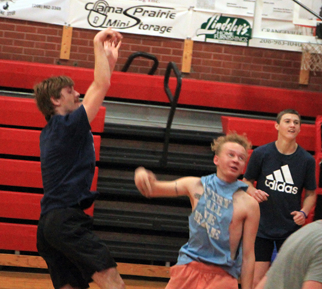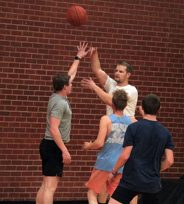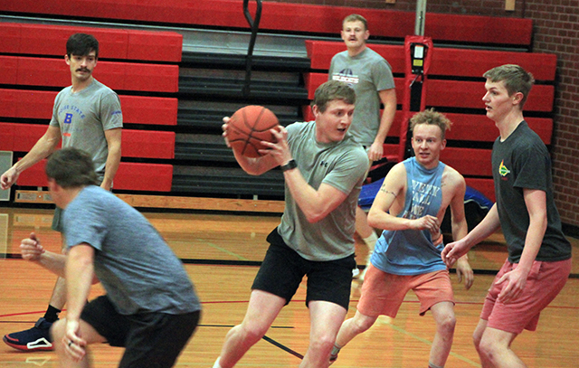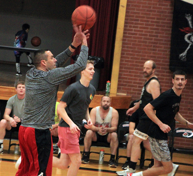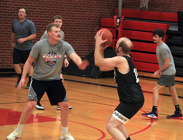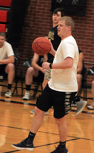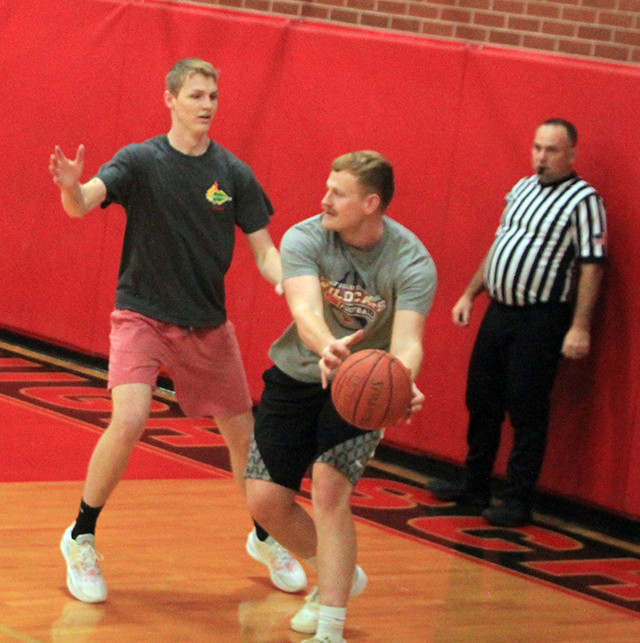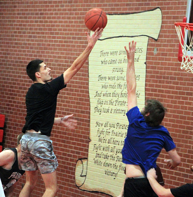 Prairie High School held their annual Alumni Basketball games Tuesday, Dec. 26. There were 12 women participating and 21 men. The women played two 20 minute running clock halves while the men played six 10-minute periods due to the greater numbers. Jordyn Higgins, Krystin Uhlenkott Schlader, Kyndahl Ulmer Brumer, Leah Higgins, Kayla Schumacher Ross and Madison Shears made up one team while Jamie Chicane Scheffler, Ellea Uhlenkott, Ali Rehder, Ciara Chaffee, Tara Schlader and Laney Forsmann made up the other team. The first team listed jumped out to a 15-2 lead as Shears hit a pair of 3-pointers and Jordyn Higgins added another. However the other team rallied and the first team led just 26-24 at halftime. The first team pulled away in the second half though, outscoring the second team 28-18 to win 54-42. The first men’s team was made up of Devin Ross, Alex McElroy, Pat McWilliams, Jake Bruner, Brody Hasselstrom, Brandon Higgins, Quirt Goeckner, Jon Rehder, Lane Schumacher and Cole Schlader. The second team was made up of Dylan Schumacher, Glenn Poxleitner, Calvin Hinkelman, Adam Forsmann, Kenneth Enneking, Shane Hason, Tanner Ross, Travis Alfrey, Wyatt Ross, Colton McElroy and Rhett Schlader. The first team led most of the way but the second team rallied in the final two periods to pull out an 85-82 win. The first team led 15-11 after 1 period, 33-20 after the second, just 42-41 at the half, 60-51 after 4 periods and 74-70 after 5 periods before being outscored 8-15 in the final frame. The second team didn’t lead until the final couple of minutes. Proceeds from the game went to the Prairie athletics fund. ![]() Adam Forsmann sites in a 3-point shot in the men's alumni game. He is guarded by Jake Bruner. Also shown from left are Calvin Hinkelman, Brandon Higgins and Wyatt Ross. ![]() Brandon Higgins drives into the lane against Dylan Schumacher. Also shown from left are Calvin Hinkelman, Wyatt Ross, Jake Bruner and Travis Alfrey. ![]() Cole Schlader shoots. Also shown are Travis Alfrey and Lane Schumacher. ![]() Devi Ross goes for a lay-up over the block attempt of Kenneth Enneking. ![]() Dylan Schumacher puts up a 3-point jumper. ![]() Jake Bruner looks to pass a Dylan Schumacher guards him. ![]() Jon Rehder puts up a 3-point shot. Also shown are Dylan Schumacher, Adam Forsmann and Devin Ross. On the bench are Brandon higgisn and Pat McWilliams. ![]() Lane Schumacher puts up a deep 3-point attempts. Also shown are Devin Ross and Kenneth Enneking. On the bench are Pat McWilliams and Quirt Goeckner. ![]() Rhett Schlader with the ball. Behind him is Colton McElroy. Tanner Ross cam be seen on the bench. ![]() Tanner Ross makes a pass over Brandon Higgins. Also shown ar Travis Alfrey and Lane Schumacher. ![]() Wyatt Ross puts up a 3-point shot. See girls sports page for photos from the women's game. *indicates league game NOVEMBER