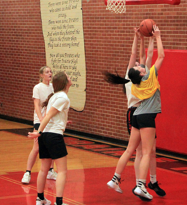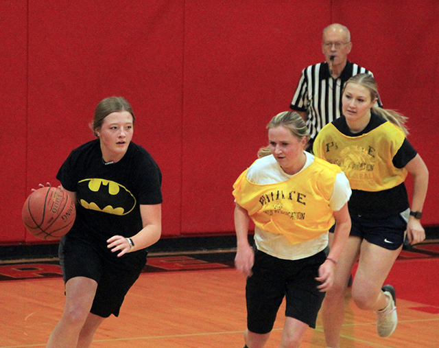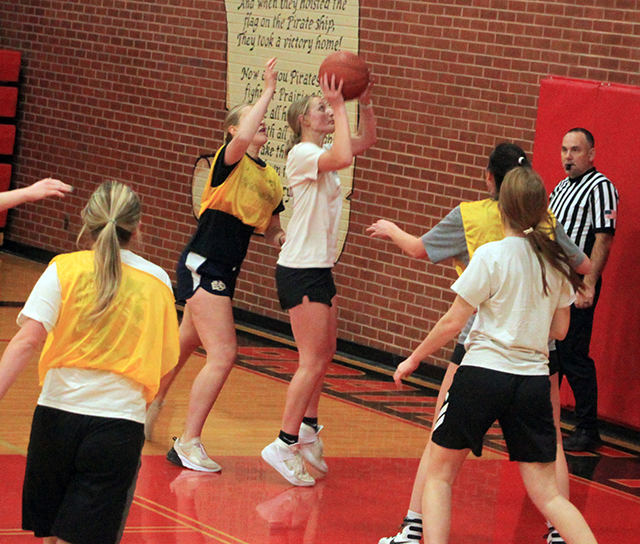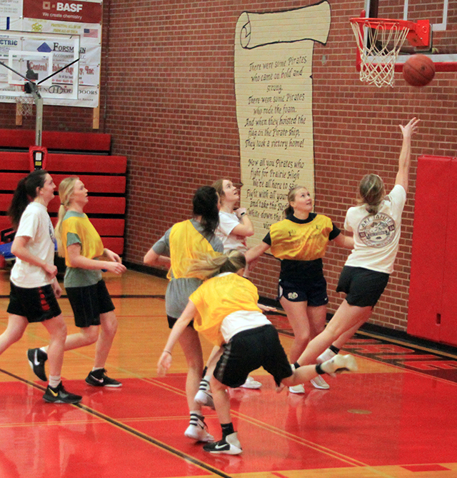Photos from the women's alumni basketball game ![]() Ellea Uhlenkott drove to the hoop for the first points of the women's alumni game. Shown from left are Ciara Chaffee, Leah Higgins, Kyndahl Ulmer Bruner, Jordyn Higgins, Tara Schlader and Kayla Schumacher Ross. ![]() Ciara Chaffee blocks Kyndahl Ulmer Bruner's shot attempt. Also shown are Ellea Uhlenkott and Tara Schlader. ![]() Ellea Uhlenkott shoots as Kayla Schumacher Ross attempts to block the shot from behind. Also shown are Jordyn Higgins, Kyndahl Ulmer Bruner and Tara Schlader. ![]() Ciara Chaffee is surrounded by the entire opposing team. From left are Madison Shears, Krystal Uhlenkott, Schlader, Jordyn Higgins, Kyndahl Ulmer Bruner and Leah Higgins. ![]() Jamie Chicane Scheffler blocks Kyndahl Ulmer Bruner's shot. Also shown are Ciara Chaffee, Alie Rehder and Ellea Uhlenkott. Referees are Jim Rehder and David Shears. ![]() Krystin Uhlenkott Schlader passes out of a double team. Also shown are Ali Rehder, Ellea Uhlenkott and Kyndahl Ulmer Bruner. ![]() Kyndahl Ulmer Bruner drives from the free throw line toward the hoop. Also shown are Jordyn Higgins, Jamie Chicane Scheffler, Ali Rehder, Laney Forsmann, Kayla Schumacher Ross, Ciara Chaffee and Leah Higgins. ![]() Ciara Chaffee takes the ball to the hoop against 3 opposing players. From left are Leah Higgins, Jordyn Higgins and Kyndahl Ulmer Bruner. ![]() Laney Forsmann heads upcourt with the ball and is defended by Jordyn Higgins and Kayla Schumacher Ross. ![]() Madison Shears shoots for 3. She had at least 4 made 3's in the game. Ellea Uhlenkott attempts to block the shot and Kayla Schumacher Ross is in the background. ![]() Kyndahl Ulmer Bruner looks to pass to Leah Higgins in the corner. Shown defending are Ali Rehder and Ellea Uhlenkott. PIRATES GIRLS BASKETBALL SCHEDULE FOR 2023-24