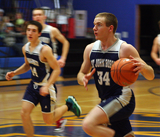 give Bosco a 7-4 lead at the end of the period.Warren added a lay-up to open the second quarter scoring. After a Timberline basket, Noelle Chmelik and Audrey Warren each scored to make it 13-6. After another Timberline basket, Bosco closed out the first half with a 7-0 run. Vivian Dahlsrud scored a lay-up, Sarah Waters scored on a 3-point shot and Audrey Warren added a lay-up for a 20-8 halftime lead. Timberline scored to open the third quarter then it was a 6-0 run for Bosco. Savannah Perrin drove in for a lay-up and then a minute and a half later stole the ball and drove for another lay-up. Julia Wassmuth scored to make it 26-10. After a Timberline free throw, Waters scored a pair of baskets to make it 30-11 at the end of the third quarter. Timberline scored a pair of baskets in the opening 2 minutes of the fourth quarter, bracketing a basket by Perrin, Bosco then went on a 7-0 run with Waters scoring 2 free throws and a basket and Raylie Warren hitting a 3-pointer for a 39-15 lead with 3:15 to play. Timberline scored a basket then Waters and Wassmuth each scored to close out the game. Waters had 15 point to lead the Patriots in scoring. Raylie Warren scored 8 with Perrin and Wassmuth scoring 6 each. Audrey Warren scored 4 and Dahlsrud and Chmelik scored 2 each. Bosco had a 41-32 edge on the boards. Perrin and Water each had 8 rebounds while Raylie Warren had 7. Waters had 7 steals and 4 assists while Audrey Warren had 4 steals and 4 assists. The Patriots were 19 for 57 from the field, 33%, and 3 for 11 at the line, 27%. Timberline was 8 for 40 from the field, 20%, and 1 for 4 at the line, 25%. This game did not count in the league standings as Timberline is not playing a full league schedule this season. SJB 7 13 10 13 -43 Timberline 4 4 3 6 -17 SJB-Sonnen 0-1, 0-0, 0; Seubert 0-2, 0-0, 0; Perrin 3-12, 0-2, 6; Wassmuth 3-7, 0-0, 6; A. Warren 2-9, 0-2, 4; Dahlsrud 1-8, 0-2, 2; Waters 6-10, 2-4, 15; R. Warren 3-6, 1-1, 8; Chmelik 1-3, 0-0, 2. 3-pointers-Waters, R. Warren. Timberline-Binder 2-10, 1-2, 5; Presnell 1-10, 0-0, 2; Anderson 1-3, 0-0, 2; Harris 2-15, 0-0, 4; Green 2-2, 0-2, 4; Bonner 0-0, 0-0, 0. 3-pointers-None. Boys at Timberline The Patriots earned a season split with Timberline by pulling out a 2-point win.Bosco got off to a strong start as they jumped out to an 8-0 lead. Levi Wassmuth had a pair of baskets and Conner Nuxoll and Sam Weckman each added a basket. After Timberline cracked the scoreboard at the 3:49 mark, Cody Weckman made 2 free throws. After a second Timberline basket, Nathan Wassmuth converted a 3-point play for a 13-4 lead. Timberline added a free throw to make it 13-5 at the end of the quarter. The two teams traded baskets through the first 4 minutes of second quarter as each Timberline basket was answered by a Patriot basket. After Sam Weckman scored to make it 19-11, Timberline put together a 0-6 run to cut the lead to 19-17. A steal by Levi Wassmuth broke the run. Levi scored again after a Timberline basket to make it 23-19. Timberline scored in the final seconds to make it 23-21 at the half. Timberline tied it to open the second half but Bosco responded with a free throw and a layup by Levi Wassmuth. Another Timberline score was answered with a basket by Sam Weckman and a free throw by Nathan Wassmuth. Timberline then scored a basket to make it 29-26 after 3 quarters. Stallone Hoene scored to keep Bosco on top but then Timberline hit a 3-pointer to tie it. Hoene put Bosco back on top but another 3 gave Timberline their first lead of the game with 5:42 to play. Cody Weckman put the Patriots back on top with a midrange shot but Timberline then had a 1-6 run to take their biggest lead of the game at 36-40 with 2:53 left. Hoene sank 2 free throws and Levi Wassmuth stole the ball and scored to tie it a 40 with 1:30 to play. Timberline took back the lead with a 3-pointer with 1:15 left but that turned out to be their final points. A defensive rebound by Sam Weckman led to a basket by Nathan Wassmuth to cut the deficit to 1 point. With 13 seconds left Cody Weckman scored the go-ahead basket after stealing the ball and driving to the hoop. Levi Wassmuth added a free throw to make it a 2-point final margin. Levi Wassmuth scored 16 to lead all scorers. Hoene scored 8, Sam Weckman 7, Cody Weckman and Nathan Wassmuth 6 each and Nuxoll 2. Timberline had a 32-42 rebounding edge. Levi Wassmuth had 9 to lead the Patriots. Cody Weckman had 5 steals while Levi Wassmuth had 4. Hoene had 3 assists. The Patriots were 21 for 62 from the field, 34%, and 9 for 19 at the line, 47%. Timberline was 18 for 47 from the field, 38%, and 4 for 12 at the line, 33%. SJB 13 10 6 16 -45 Timberline 5 16 5 17 -43 SJB-Beckman 0-2, 0-2, 0; Rose 0-3, 0-0, 0; Hoene 3-8, 2-2, 8; C. Weckman 2-12, 2-2, 6; L. Wassmuth 7-13, 2-4, 16; Nuxoll 1-2, 0-2, 2; S. Weckman 3-12, 1-4, 7; N. Wassmuth 2-3, 2-3, 6. 3-pointers-none. Timberline-Mabberly 5-7, 2-2, 12; Bonner 4-8, 0-4, 8; Marshall 1-7, 0-0, 2; West 2-4, 0-2, 6; G. Christopherson 4-14, 1-2, 9; Hodges 0-0, 0-0, 0; K. Christopherson 1-2, 1-2, 3; Hunter 0-1, 0-0, 0; Richardson 1-5, 0-0, 3. 3-pointers-West 2, Richardson Girls at Nezperce The Lady Patriots ran into