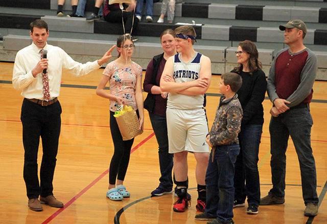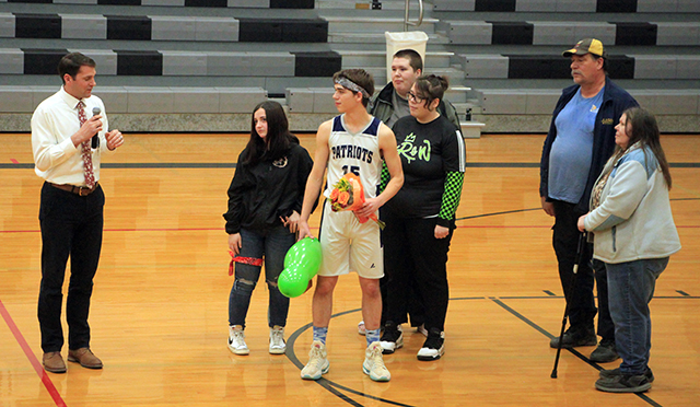 The St. John Bosco boys team had 3 seniors. Coach Alex Frei said a few words about each senior. From top down are Noah Beckman, Stallone Hoene and Levi Wassmuth with their respective families.