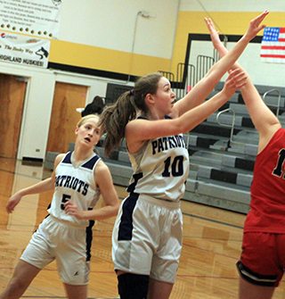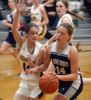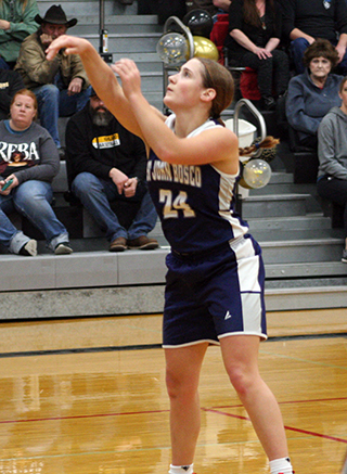 Patriots to outscore them in the fourth quarter.Julia Wassmuth and Sarah Waters each scored 7 to lead the Patriots in scoring. Vivian Dahlsrud added 4 and Catherine Seubert scored 2. SJB 2 6 6 6 -20 Deary 12 18 13 4 -47 SJB-Seubert 1, 0-0, 2;Dahlsrud 2, 0-0, 4; Perrin 0, 0-0, 0; Wassmuth 3, 1-2, 7; Chmelik 0, 0-0, 0; Mager 0, 0-0, 0; Waters 3, 1-2, 7; Sonnen 0, 0-0, 0. 3-pointers-none. Deary-Bovard 0, 0-0, 0; Proctor 1, 0-0, 3; K. Wood 2, 0-0, 6; Kirk 6, 5-10, 17; Pulido 0, 0-0, 0; A. Wood 6, 0-0, 17; Griffin 1, 0-0, 2; Eastman 0, 0-0, 0; Vincent 2, 0-0, 4; Winter 0, 0-0, 0. 3-pointers-A. Wood 5, K. Wood 2, Proctor Boys vs. Deary The boys games against Deary was much closer than when they played at Deary.The Patriots trailed just 15-18 at the end of the first quarter and 24-32 at the half. They outscored the Mustangs 20-14 in the third quarter to close within 2 at 44-46 after 3 quarters. Deary outscored them 12-17 in the fourth to pull away for the win. Levi Wassmuth and Sam Weckman each scored 15 points to lead the Patriots in scoring. Noah Beckman scored 7 while Tommy Rose, Stallone Hoene and Nathan Wassmuth each scored 5. Connor Nuxoll and Cody Weckman added 2 points each. SJB 15 9 20 12 -56 Deary 18 14 14 17 -63 SJB-Beckman 3, 1-2, 7; Nuxoll 1, 0-0, 2; Rose 2, 0-0, 5; Hoene 2, 1-2, 5; C. Weckman 1, 0-1, 2;N. Wassmuth 2, 1-3, 5; L. Wassmuth 6, 3-4, 15; S. Weckman 7, 0-0, 15. 3-pointers-Rose, S. Weckman. Deary-Proctor 3, 0-0, 6; Hubbard 1, 1-2, 3; Vincent 7, 0-1, 14; Clark 5, 0-0, 12; Ashmead 8, 1-2, 17; Taylor 5, 1-6, 11. 3-pointers-Clark 2. Girls at Highland The Lady Patriots got a triple-double from Julia Wassmuth as they beat Highland at Craigmont.This was the Huskies home game and Bosco wound up sweeping the season series. ![]() Highland scored first but Sarah Waters tied it with a putback. Highland scored again but Wassmuth gave Bosco their first lead with a 3-pointer. Highland answered with a 3-pointer to take back the lead but Waters converted a 3-point play to put Bosco on top for good. A basket by Miah Mager, a free throw by Noelle Chmelik, a free throw by Waters and a corner shot by Wassmuth made it 14-7 for the Patriots. Highland scored 4 straight to make it 14-11 at the end of the first quarter. Bosco started the second quarter with a 7-0 run and held Highland scoreless until the final 15 seconds of the half. Catherine Seubert had a free throw, Vivian Dahlsrud scored 2 baskets and Mager added a basket to make it 21-11 with 31 seconds left in the half. Highland converted a 3-point play to make it 21-14 at the break. Highland scored to open the second half then Bosco put together an 11-1 run. Mager started the run with a putback. Chmelik made a free throw and Savannah Perrin scored a 15 foot shot to make it 26-16. Highland scored a free throw then Wassmuth scored 2 baskets and Dahlsrud added another for a 32-17 lead. Highland’s first 2-point basket of the second half was answered with a lay-up following a steal by Wassmuth. Highland closed out the third quarter with a 3-pointer to make it 33-22. Perrin opened the fourth quarter scoring then Highland scored a pair of baskets to get their deficit into single digits. Perrin and Wassmuth each scored to push the lead back to 13 at 39-26. After a Highland 3, Wassmuth scored after stealing the ball and Perrin added a free throw to finish off the game. Wassmuth had 14 points, 16 rebounds and 10 steals to lead the Patriots in all 3 catefories. Dahlsrud scored 8 while Waters and Mager scored 6 each. Perrin scored 5, Chmelik 2 and Seubert 1. Bosco had a 50-41 edge on the boards. Waters was also in double figures with 10 rebounds. Wassmuth also had 5 assists while Waters added 6 steals and 3 assists. Chmelik also had 3 assists. The Lady Patriots were 17 for 66 from the field, 26%, and 6 for 21 at the line, 29%. Highland was 12 for 46 from the field, 26%, and 2 for 6 at the line, 33%. SJB 14 7 12 9 -42 Highland 11 3 8 7 -29 SJB-Dahlsrud 4-8, 0-2, 8; Perrin 2-3, 1-2, 5; Wassmuth 6-17, 1-7, 14; Chmelik 0-5, 2-4, 2; Waters 2-22, 2-6, 6; Mager 3-5, 0-0, 6; Sonnen 0-0, 0-0, 0; Seubert 0-3, 1-2, 1. 3-pointers-Wassmuth. Highland-Hix 0-2, 0-0, 0; Smith 1-2, 0-0, 3; Shay. Stamper 2-17, 0-0, 4; Beck 4-10, 0-3, 8; Thomason 2-3, 0-0, 6; Bovey 0-1, 0-0, 0; Click 2-8, 2-3, 6; Shy. Stamper 1-3, 0-0, 2. 3-pointers-Thomason 2, Smith. Boys at Highland The Bosco boys stayed in