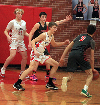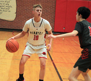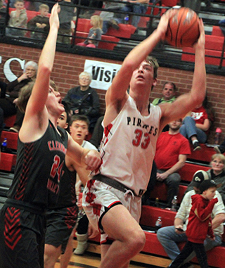 rally that cut the lead to 2 with 30 seconds left to prevail by 6.![]() C.V. scored the first 2 points of the game but Prairie took their first lead on a 3 by Matt Wemhoff. Noah Behler followed with another 3 to make it 6-2. C.V. rallied with 6 straight to retake the lead. A free throw by Lee Forsmann and 2 free throws by Riley Shears put the Pirates back on top. C.V.’s Landon Schlieper scored to give C..V. what turned out to be their final lead of the game. Logan Weber scored on a putback to give Prairie back the lead. Phil Swartz then scored on a lay-up and followed with another lay-up on a steal by Forsmann to make it 15-10 at the end of the quarter. C.V. scored a free throw to open the second quarter then the Pirates scored 9 straight points. Forsmann scored a pair of baskets inside. Schwartz converted a 3-point play and then Forsmann scored again to make it 24-11. After a basket by Schlieper, Behler and Forsmann each scored to put Prairie up by 15 at 28-13 with 4:05 left in the half. C.V. scored 5 straight to cut the lead to 10. A lay-up each by Shears and Schwartz made it 32-18. A basket by C.V. made it 32-20 at the half. Prairie opened the second half with a 3 by Forsmann to again lead by 15.C.V. answered with 5 straight and Prairie then scored a free throw by Wemhoff and a 3 by Shears. 5 straight C.V. points got them within 9 at 39-30. Prairie answered with a lay-up by Schwartz and 2 free throws by Forsmann to lead 43-30. A C.V. free throw made it 43-31 after 3 quarters. Trenton Lorentz scored to open the fourth quarter then C.V. put together a 10-22 rally to pull within 2 points with 29.3 seconds remaining. Prairie got a basket by Briggs Rambo and 2 baskets each from Forsmann and Behler in that run to stay in the lead. After C.V. got within 2, Schwartz closed out the game by hitting 4 of 6 free throws to give Prairie their final 6-point margin. Forsmann scored 18 points and had 10 rebounds to lead the team in both categories. Schwartz nearly had a double-double as well with 15 points and 9 rebounds. Behler scored 9, Shears 7, Wemhoff 4 and Rambo, Weber and Lorentz 2 each. Prairie had a 41-30 advantage on the boards. Forsmann and Wemhoff each had 1 steal and Wemhoff and Schwartz each had 3 assists. Prairie was 22 for 60 from the field, 37%, and 10 for 18 at the line, 56%. C.V. was 19 for 51 from the field, 37%, and 10 for 17 at the line, 59%. Prairie also won the JV game 59-35. Prairie never trailed as they jumped out to a 10-0 lead with Ben Secrest scoring 6 of those points while Collin Ray had a basket and Levi Gehring had 2 free throws. After a 3-point play by C.V., Nate Forsmann made a basket and Ray hit a 3. A free throw by Forsmann made it 16-3. After a C.V. basket, Max Rehder hit a 3 to give Prairie a 19-5 lead at the end of the first quarter. Prairie scored the first 10 points of the second quarter as Ray hit a pair of 3s and Forsmann added a basket. Ray then made 2 free throws to make it 29-5. Each team scored 8 points the rest of the first half as Prairie took a 37-13 lead into the break. Secrest and Forsmann each had 4 of those points. Each team scored 14 in the third quarter as Prairie led 51-27 after 3. Jackson Enneking, Ray and Forsmann each scored 4 in the quarter and Kade Quintal scored the other 2 points. Prairie scored the first 6 points of the fourth quarter to take a 57-27 lead and invoke the running clock mercy rul. Rehder, Secrest and Caden Armbrust each scored 2 in that run. C.V. then outscored Prairie 2-8 the rest of the way with Prairie’s only points coming from Quintal on a drive to the hoop. Ray scored 17 to lead all scorers. Forsmann scored 13 and Secrest scored 12 on 6 for 7 shooting. Rehder scored 5. Enneking and Quintal scored 4 each while Gehring and Armbrust scored 2 each. C.V. had a 30-33 edge on the boards. Rehder led the Pirates with 8 rebounds while Forsmann had 7. Gehring had 6 steals and 3 assists while Enneking, Ray and Rehder also had 3 assists each. Prairie was 24 for 59 from the field, 41%, and 6 for 10 at the line, 60%. C.V. was 16 for 36 from the field, 44%, and 3 for 7 at the line, 43%. Prairie 15 17 11 16 -59 C.V. 10 10 11 22 -53 Prairie-Wemhoff 1-4, 1-2, 4; Schwartz 5-7, 5-7, 15; Rambo 1-6, 0-0, 2; Behler 4-11, 0-2, 9; Forsmann 7-18, 3-4, 18; Shears 2-10, 2-2, 7; Weber 1-1, 0-0, 2; Lorentz 1-4, 0-2, 2. 3-pointers-Wemhoff, Behler, Forsmann, Shears. C.V.-Osborn 3-10, 1-2, 8; Louwien 2-4, 0-0, 6; Scott 2-10, 6-10, 10; Gardner 2-6, 0-0, 4; Schlieper 9-18, 3-5, 23; Moses 1-2, 0-0, 2; Raff 0-1, 0-0, 0. 3-pointers-Louwein 2, Schlieper 2, Osborn. Vs. Timberline The Pirates made it a season sweep over the Spartans.They led 14-8 after one quarter and 30-20 by halftime. They blew out the Spartans in the third quarter, outscoring them 23-4, to take a 53-24 lead into the fourth quarter. Timberline outscored them 5-10 in the fourth. Forsmann led in both points and rebounds with 12 points and 14 rebounds. He also had four assists and four steals. Shears and Schwartz each scored 11 points while Rambo and Weber were also in double figures with 10 each. Lorentz and Nate Forsmann each added 2 points. There was no JV game. Prairie 14 16 23 5 -58 Timberline 8 12 4 10 -34 Prairie-Wemhoff 0, 0-0, 0; Gehring 0, 0-0, 0; Shears 4, 0-2, 11; Lorentz 1, 0-0, 2; Schwartz 4, 0-0, 11; Rambo 4, 1-2, 10; Weber 5, 0-0, 10; Behler 0, 0-0, 0; N. Forsmann 1, 0-1, 2; L. Forsmann 3, 5-6, 12. 3-pointers-Shears 3, Schwartz 3, Rambo, L. Forsmann. Timberline-Mabberly 3, 0-0, 6; Hunter 0, 0-0, 0; Marshall 2, 0-1, 4; K. Christopherson 2, 0-0, 5; Hodges 0, 0-0, 0; West 1, 0-0, 2; Richardson 0, 3-4, 3; G. Christopherson 6, 2-5, 14. 3-pointers-K. Christopherson. At Genesee The Pirates had little trouble beating Genesee this time after having to win at the buzzer when they played at Cottonwood. The
