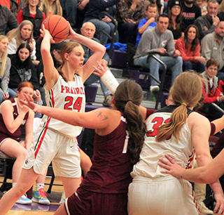 Prairie jumped out to an early 6-0 lead as Lexi Schumacher, Elven and Kylie Schumacher each scored a basket. Kamiah then took over and scored 10 straight points to take their first lead of the game.