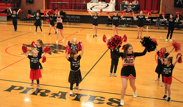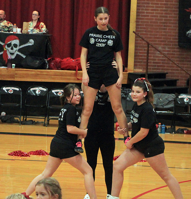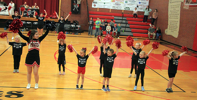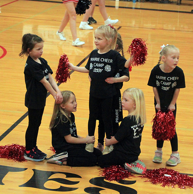 More photos from the Prairie Cheer Campers performing at halftime of the girls' District Tournament opener against C.V.