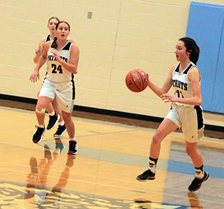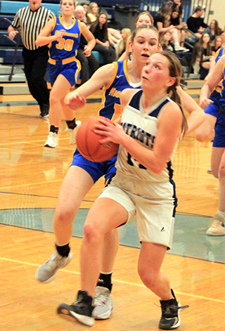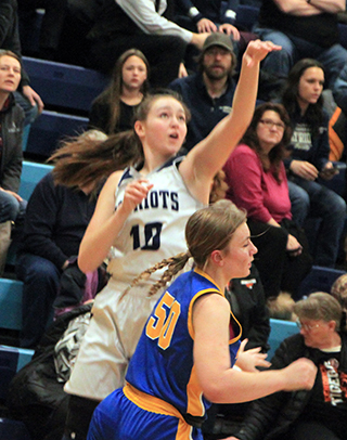 Lady Patriots season ends The St. John Bosco Lady Patriots had a 4 point lead at halftime but wound up losing 30-34 to Nezperce in a loser-out game at the District Tournament in Lapwai Wednesday, Feb. 7. ![]() Bosco jumped out to a 6-0 lead as Sarah Waters and Julia Wassmuth each scored a basket and Noelle Chmelik made 2 free throws. Nezperce then came back with 5 straight to finish the first quarter trailing just 6-5. Nezperce then took their first lead with a basket to open the second quarter. The Patriots broke a 5½ minute scoring drought when Wassmuth scored a lay-up. Nezperce took back the lead then Waters scored and Rachel Sonnen added a putback for a 12-9 lead. After a free throw by Nezperce, Sonnen made a defensive rebound and fed the ball out to Chmelik who took the ball all the way for a lay-up to give the Patriots at 14-10 lead at the half. However, Wassmuth picked up her third foul with 1:29 left in the half and then picked up her fourth foul early in the third quarter and went to the bench for the last 5:47 of the period. Nezperce scored the first 6 points of the second half to retake the lead. Catherine Seubert scored on an inbounds play to tie it and Waters scored to put the Patriots back on top. Nezperce took back the lead with 3 straight points but Waters tied it with a free throw. A Nezperce free throw put the Nighthawks back on top put Savannah Perrin converted a 3-point play to give Bosco a 22-20 lead with 1:02 left in the quarter. Nezperce then made 3 of 4 free throws in the final 40 seconds to take a 22-23 lead into the fourth quarter. The Nighthawks added a basket to open the fourth quarter but Chmelik made a pair of baskets to five Bosco a 26-25 lead with 4:13 left. Nezperce took back the lead with 4:00 to play and then hit the game’s only 3-pointer for a 4-point lead with 3:35 left. Wassmuth, who managed to play the entire fourth quarter without picking up another foul, scored to cu the lead to 2 but Nezperce answered with a pair of baskets to take their biggest lead of the game with 9 seconds left. Wassmuth scored the game’s final 2 points to cut the final margin to 4. Wassmuth and Chmelik each scored 8 points to lead the Patriots. Waters scored 7. Perrin scored 3 and Sonnen and Seubert scored 2 each. Rebounding was nearly even as Nezperce held a 35-36 edge. Waters had 9 rebounds to lead the Patriots while Chmelik added 7. Waters had an amazing 10 steals and Perrin and Vivian Dahlsrud each had 2 assists. The Patriots were 13 for 49 from the field, 27%, and 4 for 11 at the line, 36%. Nezperce was 12 for 39 from the field, 31%, and 9 for 23 at the line, 39%. Kairys Grant had a double-double of 10 points and 10 rebounds to lead Nezperce. The Patriots end their season at 8-9 with a fourth place finish at District. SJB 6 8 8 8 -30 Nezperce 5 5 13 11 -34 SJB-Dahlsrud 0-6, 0-0, 0; Perrin 1-3, 1-1, 3; Wassmuth 4-11, 0-0, 8; Chmelik 3-10, 2-6, 8; Waters 3-12, 1-4, 7; Sonnen 1-6, 0-0, 2; Seubert 1-1, 0-0, 2; Mager 0-0, 0-0, 0. 3-pointers-none. Nezperce-Horton 2-7, 1-2, 5; Lux 2-7, 1-2, 6; Wilcox 3-8, 1-3, 7; Zenner 2-5, 0-2, 4; Grant 2-6, 6-12, 10; Kirkland 0-4, 0-2, 0; A. Duuck 1-2, 0-0, 2; E. Duuck 0-0, 0-0, 0. 3-pointers-Lux. ![]() Noelle Chmelik goes for a transition lay-up against Nezperce at District. ![]() Sarah Waters shoots the ball against Nezperce. ![]() Savannah Perrin brings the ball up against Nezperce. Also shown are Sarah Waters and JuliaWassmuth. ![]() Vivian Dahlsrud puts up a shot against Nezperce. Patriots win at Clarkston The St. John Bosco Patriots defeated the Clarkston JV at Clarkston, 61-45 on Monday, Feb. 12. We will have details on the game in next week’s edition. ST. JOHN BOSCO BOYS AND GIRLS HIGH SCHOOL BASKETBALL SCHEDULES NOVEMBER 21-Girls at C.V., 6 p.m., postponed due to illness at C.V.30-Girls at Logos, 6 p.m., won 26-19 30-Boys vs. Logos Online at Logos gym, 7:30 p.m., won 56-14 DECEMBER 4-Girls, Boys at Salmon River, 6 p.m. MST, girls lost 32-35, boys lost 38-618-Girls, Boys vs. Timberline* at Highland, 5 p.m., girls won 38-26, boys lost 31-60 9-Girls, Boys vs. Nezperce* at Highland, 1 p.m., girls won 32-27, boys lost 47-60 14-Girls, Boys home game vs. Highland* at Highland, 6 p.m., girls won 32-26, boys lost 40-64 15-Girls, Boys at Deary*, 6 p.m., girls lost 25-44, boys lost 40-74 29-30-Girls won 43-7 over Coeur d'Alene Catholic School, boys lost twice JANUARY 6-Girls, Boys vs.Salmon River at Highland, 5 p.m., girls lost by 1, boys won 9-Boys at C.V., 6 p.m., lost 54-63 11-Girls, Boys vs. Kendrick* at Highland, 6 p.m., postponed due to weather 16-Girls, Boys at Timberline*, 6 p.m., girls won 43-17, boys won 45-43 18-Girls, Boys at Nezperce*, 6 p.m., girls lost 32-42, boys lost 59-68 23-Girls, Boys vs. Deary* at Highland, 6 p.m., girls lost 20-47; boys lost 56-63 25-Girls, Boys at Highland*, 6 p.m, girls won 42-29, boys lost 34-58. 26-Girls, Boys vs Kendrick at Highland, 6 p.m., makeup for Jan. 11 postponement, girls lost 24-63, boys lost 22-78 29-Girls vs. Clarkston JV, 6 p.m., Boys vs. Logos Online, Senior Night, 7:30 p.m., girls won 54-51 in OT, boys won 57-45 30-Girls, Boys at Kendrick, 6 p.m., girls lost 19-78, boys lost 33-76 Feb.-Boys to play Clarkston JV or C, home & away, dates and sites to be determined. Feb. 5-Girls play Deary at District at 6 p.m. at Lapwai High School, lost 14-46 Feb. 7-Girls District vs. Nezperce, 6 p.m., loser out, lost 30-34 Feb. 12-Boys at Clarkston JV, 6 p.m., won 61-45, details next week Feb. 19-23-Boys District, Opener at Highland at 6 p.m. Monday, Feb. 19. Feb. 29-March 2-Boys State |