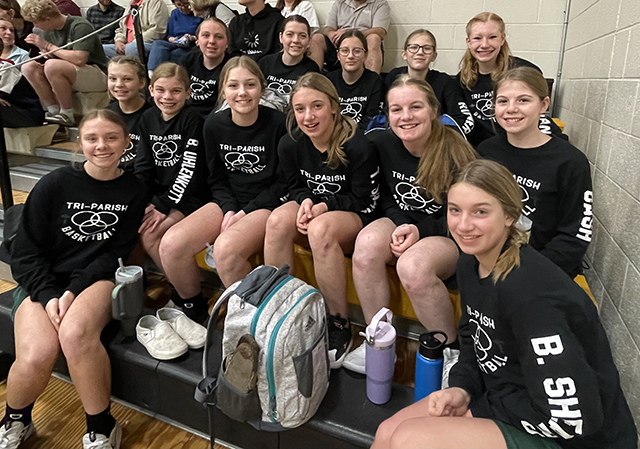 Mass. ![]() The Tri-Parish girls team went through the Hallissey Tournament undefeated this past weekend, earning the first place trophy.Pictured back from left are Coach Dustin Behler, Reagan Brannan, Aubree Riener, Capri Hagen, Mia Anderson, Beka Schumacher, Macie Uhlenkott, Bekah Shears, Tori Shears, Coach Dave Shears. Front from left are Zoey Behler, Ayla Ratcliff, Blake Uhlenkott, Mikayla Rowland and Faith Cash, Not pictured: Kenly Forsmann. Photo by Tara Rowland. ![]() The St. John Bosco Academy boys were coached by Mark Frei and Kevin Rehder and included: Wyatt Crea, Oliver Dahlsrud, Anthony Frei, Pierce Frei, RJ Garza, Malachi Graham-Pile, Simon Hagen, Ignatius Parmantier, John Seubert, Will Sonnen and Joseph Waters. Photo courtesy of Hallissey officials. ![]() The Tri-Parish boys team was coached by Adam Forsmann Nick Frei and included: Phineas Fitch, Anthony Forsmann, Matt Frei, Bucky Harman, Austin Labrum, Henry Rehder, Sam Rehder, Cooper Reiner, Gabe Severns, Ray Terhaar, Tate Uhlenkott, Marshall Weber and Nathan Weber. Submitted photo. ![]() The St. John Bosco Academy girls were coached by Cori Dieseldorff and assisted by Miah Mager and Catherine Seubert and included: Catherine Beckman, Maggie Black, AnnaMae Cummings, Teagen Dieseldorff, Marie Duman, Tess Goeckner, Brianne Nuxoll, CeCe Remacle and Madeline Wassmuth. Submitted photo. ![]() The Tri-Parish girls Hallissey team awaiting the chance to get on the floor for the championship game against St. Mark’s. Back row: Capri Hagen, Reagan Brannan, Ayla Ratcliff, Aubree Riener, Mikayla Rowland. Middle: Zoey Behler, Blake Uhlenkott, Beka Schumacher, Tori Shears, Macie Uhlenkott, Faith Cash. Front: Mia Anderson, Bekah Shears. Not pictured: Kenly Forsmann who played the first game and then got sick and was unable to play the rest of the tournament. Photo by Tara Rowland. |