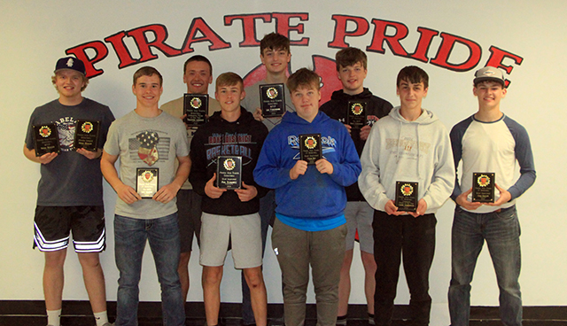 Prairie boys basketball awards were handed out Monday, March 18. From left are Noah Behler, varsity Pirate Award and co-Most Valuable; Levi Gehring, JV co-Most Valuable; Trenton Lorentz, varsity Defensive Player of the Year; Phil Schwartz, varsity Most Improved; Lee Forsmann, varsity co-Most Valuable; Collin Ray, JV co-Most Improved; Nate Forsmann, JV co-Most Valuable; Chase VonBargen, JV Defensive Player of the Year and Cole Duclos, JV co-Most Improved. Not pictured is Max Rehder, JV Pirate Award. The Pirates were limited to just 3 hits in the game, a single each by Phil Schwartz, Chris Schumacher and Devin Schultz. They scored their only run in the fourth inning. Jake Quintal drew a leadoff walk. Collin Ray then hit the ball toward second and reached on an error. Schumacher grounded to short, forcing Ray at second with Quintal going to third. Prairie then executed a delayed double steal. Schumacher took off for second with the throw going to second. Quintal took off from third as soon as the throw was made and scored while Schumacher beat the throw at second. Prairie pitcher Noah Behler, their best pitcher last season, wasn’t sharp in the opener. C.V.’s first 3 hitters all singled on the only strikes each one saw. They all came around to score as the Rams put up 5 first innings singles while picking up a pair of free passes in a hit batsman and a walk. The Rams added 2 more in the second on 3 more hits and a hit batsman. The Rams added another 4 runs in the third inning on just 2 hits with 2 walks and a hit batsman. Behler hit the pitch limit after 3 inning and Schwartz took over on the mound. He faced 4 batters and couldn’t get any outs, giving up 2 hits and 2 walks. Levi McElroy then went to the mound and gave up a single before getting a sacrifice fly and a strikeout. He then struggled to find the strike zone as he walked 4 straight batters. Jake Quintal then took over on the mound to get the final out on a forceout. Behler gave up 10 hits in 3 innings and 9 runs with 3 strikeouts, 3 walks and 3 hit batsmen. Schwartz gave up 2 hits and 2 walks and 4 runs. McElroy gave up 1 hit and 2 runs with 4 walks and a strikeout. Quintal face one batter and got an out. Prairie is 0-1 on both the season and in league play. Prairie 0 0 0 1 0— 1 3 4 C.V. 3 2 4 6 x—15 13 3 ![]() Phil Schwartz heads for first with a single at C.V. ![]() Noah Behler throws a pitch at C.V. ![]() Jake Quintal makes a catch in left field. ![]() Levi McElroy chases after a fly ball in center. Prairie Baseball Schedule March 15-C.V., there, V & JV, 4:30 and 6:30 p.m.19-vs. Lapwai at Clearwater Park, Lewiston, 4:30 p.m. 20-Pomeroy, there, 4 p.m. 21-Southfork Slugfest at Kooskia, vs. Liberty Christian of Richland, WA, 1:30 p.m. Schedule changed for this event 23-Southfork Slugest at Kooskia, vs. North Star Charter, 9:30 a.m.; vs. Bandon, OR,, 11:30 a.m. April 4-Kendrick, there, V & JV, 4 and 6 p.m.6-Potlatch, here, (2), Noon and 2 p.m. 9-Lewis County, here, 4:30 p.m. 16-Genesee, there, (2), 3 and 5 p.m. 20-vs Troy at Clearwater Park, (2), 11 a.m. and 1 p.m. 23-Lewis County, there, 4 p.m. 25-Kendrick, here, V & JV. 4 p.m. 30-C.V., here, V & JV, 4 p.m. May 3-Lapwai, here, 4:30 p.m.7-District Tournament, higher seed host, 4:30 p.m. 10-11-District Tournament at Orofino 16-18-State at Capital High School, Boise |
