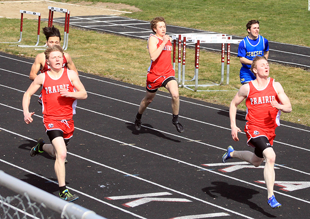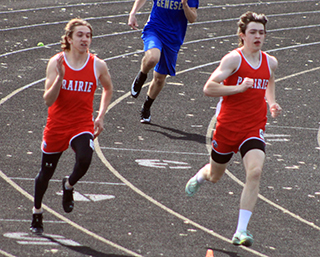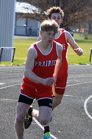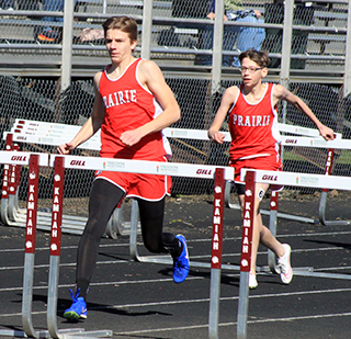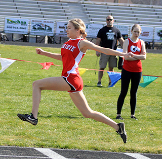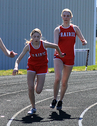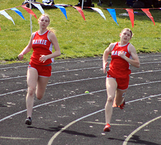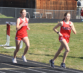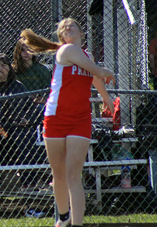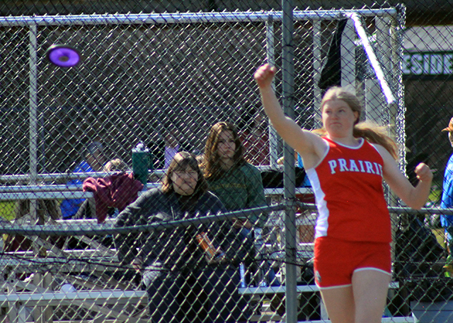 Track team dominates at Kamiah The Prairie boys and girls track teams dominated at the Small School Invitational at Kamiah on Saturday, March 16. The girls team won the team championship with 241 points, 121 more than second place Kamiah, while the boys won with 205 points, 101 more than runner-up Kamiah. Sage Elven broke the school record in the discus with a toss of 134’5”, breaking the record of 129’6½” set by Jenna Goeckner in 2001 at State. Elven also won the shot put with a mark of 35’1¼”. Sydney Shears was also won 2 individual events taking the 400 in 1:02.44 and the high jump at 4’10”. Aubree Geis won the 800 in 2:49.50. She was also 3rd in the 200 meter dash in 29.68 and 9th in the long jump at 11’9”. Avery Riener won the triple jump with a mark of 30’8”. She was also 5th in the 100 hurdles in 20.65. Briggs Rambo was a double winner for the boys team winning the 110 hurdles in 19.81 and the 300 hurdles in 47.87. He was also 7th in the pole vault at 9’0” and 11th in the long jump at 15’2”. Noah Geis won the 100 in 11.97. He was also 3rd in the 400 in 56.17. Dylan Uhlenkott was 1st in the 200 in 24.50. He was also 2nd in the 100 in 12.13 and 6th in the long jump at 17’1”. Freshman Payton Stamper was 1st in the long jump at 18’4” and was 5th in the 100 in12.51. Ben Secrest won the 400 meter dash in 54.42.He was also 3rd in the 100 in 12.17. The girls team swept all the relays. Nadia Cash, Kennedy Riener, Aubree Rehder and Avery Riener won the 4x100 in 53.84 while a second team of Harlee Brannan, Elven, Meghan Fowler and Hailey Hanson was 4th in 1:02.15. Alli Geis, Aubree Geis, Aubree Rehder and Shears took 1st in the 4x200 relay in 1:53.11. Alli Geis, Avery Reiner, Aubree Geis and Shears took 1st in the 4x400 relay in 4:23.09. Hanson, Sierra Oliver, Aubree Rehder and Kennedy Riener won the medley relay in 2:02.92. The boys team won 3 of the 4 relays. Logan Weber, Geis, Secrest and Stamper won the 4x100 relay in 46.78. Cole Duclos, Matt Wemhoff, Zane Uptmor and Weber won the 4x200 relay in 1:40.46. Geis, Duclos, Wemhoff and Secrest won the 4x400 in 3:43.66. Other girls results: Alli Geis was 2nd in the 400 in 1:06.23 and 4th in the long jump at 12’10¼”. Callie Remacle was 2nd in the high jump at 4’8”, 3rd in the 100 hurdles in 20.04, 3rd in the long jump at 13’0” and 5th in the 1600 in 7:22.57. Nadia Cash was 2nd in the long jump at 13’1 ¾”, 4th in the 100 in 14.20 and 5th in the 200 in 30.21. Oliver was 2nd in the pole vault at 7’0”, 4th in the 200 in 30.09 and 6th in the 100 hurdles in 21.47. Kennedy Riener was 3rd in the 100 in 13.90 and 4th in the 100 hurdles in 20.44. Hanson was 2nd in the shot put at 31’2½” and 3rd in the discus at 105’1”. Elizabeth Severns was 2nd in the discus at 123’11”, 3rd in the shot put at 29’9” and 5th in the 3200 in 16:33.58. Evelyn Gehring was 3rd in the 800 in 2:52.19 and 5th in the 300 hurdles in 55.73. Ella McLeod was 4th in the 3200 in 16:31.63 and 9th in the 1600 in 7:42.09. Brannan was 6th in the discus at 84’0” and 10th in the shot put at 22’8”. Fowler was 10th in the discus at 70’1” and 19th in the shot put at 18’9¼”. Kyra Robertson was 21st in the discus at 47’10” and 22nd in the shot put at 15’10”. Other boys results: Wemhoff was 2nd in the 200 in 24.90. Weber was 2nd in the high jump at 5’6” and 4th in the 200 in 25.62. Bennie Elven was 2nd in the discus at 146’6” and 4th in the shot put at 40’3”. Trenton Lorentz was 2nd in the long jump in 18’1½”. Landon Riener was 2nd in the 110 hurdles in 21.35 and 12th in the 800 in 2:52.93. Lee Forsmann was 3rd in the discus at 141’0” and 7th in the shot put at 36’5”. Zane Uptmor was 3rd in the 300 hurdles in 50.06, 3rd in the 110 hurdles in 21.54 and 6th in the discus at 120’0”. Caden Armbrust was 5th in the 3200 in 12:25.35. Levi Gehring was 8th in the 400 in 1:00.40 and 32nd in the 100 in 14.23. Cole Duclos was 8th in the pole vault at 9’0”. Nate Forsmann was 8th in the discus at 114’2” and 9th in the shot put at 34’11”. Hayden Johnson was 11th in the 400 in 1:03.84, 17th in the 200 in 28.47, 19th in the long jump at 12’9” and 28th in the 100 in 14.03. Ashton Martin was 13th in the 200 in 27.31, 19th in the discus in 74’6” and 20th in the shot put at 25’11”. Peter Remacle was 14th in the discus at 83’5”, 19th in the shot put at 27’3” and 38th in the 100 in 17.15. Gabe Decaria was 17th in the 400 in 1:11.28; 18th in the long jump at 12’11½”, 26th in the 200 in 30.38 and 31st in the 100 in 14.11. The medley relay team of Gehring, Stamper, Duclos and Armbrust was 3rd in 4:18.73. ![]() Sage Elven broke the school record in the girls discus at Kamiah on Saturday with a toss of 134’5” She actually had more than one throw beat the old record of 129’6½” as she was over 131 feet on the throw pictured. ![]() Sydney Shears won the high jump with a mark of 4'10". ![]() Freshman Payton Stamper won the long jump in his first high school competition. ![]() Dylan Uhlenkott leads the 200 meter dash on his way to winning the event. Matt Wemhoff, left, was 2nd while Logan Weber, center, was fourth behind the Genesee runner. ![]() Avery Riener soars toward the pit as she won the triple jump. ![]() Noah Geis and Ben Secrest i nthe 400 meter dash. Secrest won with Geis placing 2nd. ![]() Briggs Rambo and Landon Riener in the 110 hurdles. They finished first and second respectively. ![]() Alli Geis and Sydney Shears in the 400 meter dash. Shears was first and Geis was second. ![]() Bennie Elven took second in the boys discus. ![]() Logan Weber went old school scissors jump in the high jump on this attempt. He wound up placing second in the event. ![]() Evelyn Gehring and Aubree Geis in the 800. Geis wound up first with Gehring third. ![]() Alli Geis hands off to her cousin Aubree Geis in the 4x200 relay. They teamed with Aubree Rehder and Syd