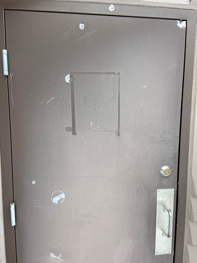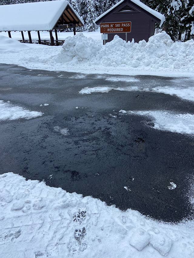Major vandalism occurred over the weekend of Saturday March 2nd and Sunday March 3rd, probably in the late evening or early morning hours, at the Fish Creek day use park and ski parking lot. A large amount of tires and pallets were burnt in a bonfire in the parking lot leaving a significant amount of burnt debris, garbage, nails, and metal cords from the tires behind and causing damage to the asphalt in the parking lot. Repairing this damage to a popular facility will require a significant expenditure of taxpayer dollars. Additionally, the outhouse in the parking lot was also shot multiple times with what appears to be a larger caliber rifle and a 9mm handgun. A substantial amount of damage was done to the outhouse facility to include the door, area around the door and damage to the inside wall of the outhouse where the bullets passed through the door striking the back wall causing significant damage to the facility. The Nez Perce-Clearwater National Forest is seeking the public’s help with any information pertaining to this incident. If you have any information on this incident please call the Forests’ Public Affairs Officer, Cyrus Forman at 208-935-4273 or email at cyrus.forman@usda.gov. All information will be treated as confidential. ![]() ![]() Bullet holes on the restroom doors. ![]() A bonfire was set on the parking lot damaging the surface. |
