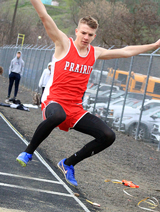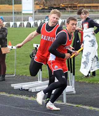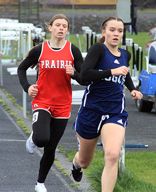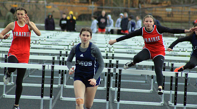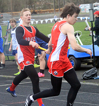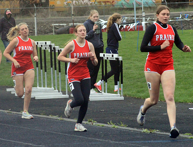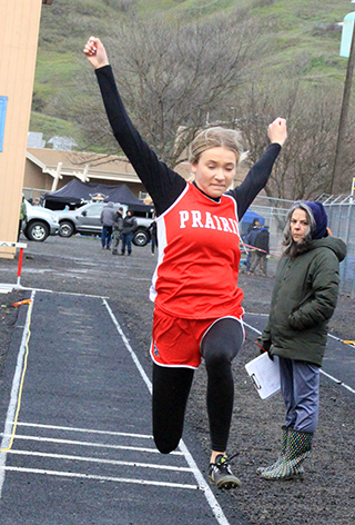 2 school records set, one tied Prairie Track & Field ScheduleTwo more school records fell and one was tied at the Kendrick Invitational Track Meet held at Lapwai Saturday, April 6. ![]() Sierra Oliver won the pole vault and broke the school record with a mark of 7’9”. She had tied the old school record at last year’s district meet as well as an earlier meet this year. Hailey Hanson and Elizabeth Severns both broke the javelin school record established by Severns on March 22 with Hanson getting the upper hand this time with a toss of 92’2”. Hanson was second in the event while Severns was third with a mark of 87’1”. Her old mark was 83’9½”. Cole Duclos tied the school record in the pole vault with a mark of 10’0” as he placed 2nd in the event. He tied the mark set by Ken Wemhoff in 1971. He also finished 9th in the 200 in 24.85 and 11th in the 400 in 57.91. The other individual event winner on the girls team was Sage elven who won the discus in 119’10½”. She was also 2nd in the shot put at 34’3”. Trenton Lorentz was a double winner for the boys team as he was 1st in the 100 in 11.70 and 1st in the 200 in 23.08. Logan Weber won the high jump with a mark of 5’6”. He was also 7th in the 100 meters in 12.51 and 8th in the 400 in 56.85. Bennie Elven won the discus with a personal best mark or 149’5”. He was also 3rd in the shot put at 39’9”, 4th in the 100 in 12.37 and 7th in the javelin at 96’2”. Matt Wemhoff was 1st in the javelin at 125’3”. He was also 6th in the 100 in 12.43. The girls team won 2 relays. The 4x100 team of Nadia Cash, Avery Riener, Aubree Rehder and Kennedy Riener was 1st in 54.95. The 4x200 team of Alli Geis, Aubree Geis, Kennedy Riener and Sydney Shears was 1st in 1:53.00. The boys team won 3 relays. The 4x100 team of Weber, Dylan Uhlenkott, Matt Wemhoff and Noah Geis was 1st in 46.50. the 4x200 team of Uhlenkott, Secrest, Geis and Lorentz was first in 1:35.50. The 4x400 team of Uhlenkott, Wemhoff, Secrest and Lorentz was 1st in 3:38.80. Other girls results: Oliver was also 2nd in the 100 hurdles in 19.08, 3rd in the 300 hurdles in 52.91 and 9th in the 100 in 14.48. Shears was 2nd in the 800 in 2:27.89 and 3rd in the 200 in 28.43. Avery Riener was 2nd in the triple jump at 29’9¾”. She was also 5th in the long jump at 13’8”. Nadia Cash was 2nd in the long jump at 13’11”. She was also 5th in the 100 in 14.19 and 11th in the 200 in 30.38. Hanson was also 2nd in the discus at 110’8” and third in the shot put at 30’)’. Severns was also 3rd in the discus at 108’6”, 5th in the 1600 in 7:21.42 and 6th in the shot put at 26’8”. Evelyn Gehring was 3rd in the 1600 in 7:09.47 and 8th in the 300 hurdles in 58.45. Callie Remacle was 4th in the 1600 in 7:08.95, 4th in the 100 hurdles in 19.60, 4th in the high jump at 4’4” and 6th in the long jump at 13’1½”Ella McLeod was 4th in the 3200 in 15:30.42 and 6th in the 1600 in 7:21.90. Kennedy Riener was 6th in the 200 in 29.20. Aubree Geis was 7th in the 400 in 1:06.29 Harlee Brannan was 7th in the discus at 78’2” and 10th in the shot put at 21’5”. Meghan Fowler was 8th in the discus at 76’2” and 11th in the shot put at 20’11”. Alli Geis was 10th in the 100 in 14.59. Kyra Robertson was 12th in the shot put at 16’5½” and 14th in the discus at 38’1”. The 4x400 relay team of Alli Geis, Kennedy Riener, Aubree Geis and Shears was 2nd in 4:20.83. The medley relay team of Hanson, Aubree Rehder, Alli Geis and Avery Riener was 2nd in 2:05.87. As a team the girls placed 2nd behind Logos with 199½ pts. Other boys results: Uhlenkott was 2nd in the 200 in 23.96. Zane Uptmor was 3rd in the 110 hurdles in 19.99, 3rd in the discus at 117’5”, 7th in the 300 hurdles in 50.40 and 15th in the 100 om 12.81. Briggs Rambo was 3rd in the pole vault at 9’0”, 5th in the 110 hurdles in 20.29, 5th in the 300 hurdles in 49.17 and 11th in the long jump at 15’3”. Lee Forsmann was 4th in the discus at 116’4” and 6th in the shot put at 33’11”. Noah Geis was 4th in the 400 in 55.29 and 5th in the 200 in 24.85. Caden Armbrust was 5th in the 1600 in 5:35.10 and 7th in the 3200 in 12:41.97. Nate Forsmann was 7th in the discus at 104’9” and 7th in the shot put at 32’8”. Secrest was 8th in the javelin at 95’0” and 10th in the 400 in 57.71. Ashton Martin was 10th in the discus in 83’4”, 14th in the 200 n 26.84, 15th in the shot put at 27’6¼” and 21st in the 100 in 13.29. Landon Riener was 7th in the 1600 in 6:39.99, 9th in the 110 hurdles in 24.00 and 11th in the 300 hurdles in 58.40. Peter Remacle was 15th in the discus at 76’0” and 19th in the shot put at 24’1”. Gabe Decaria was 23rd in the 400 in 1:11.94 38th in the 100 in 14.33, 37th in the 200 in 31.15. As a team the boys also finished in 2nd behind Logos with 172 pts. ![]() Callie Remacle and Sierra Oliver flank a Logos runner in the 100 hurdles. Oliver was second in the event while Remacle was 4th. Oliver also broke the school record in the pole vault at the meet. ![]() Trenton Lorentz and Dylan Uhlenkott wound up finishing 1st and 2nd in the 200 meter dash. ![]() Avery Riener took 2nd in the triple jump. ![]() Ben Secrest tosses the javelin. ![]() Briggs Rambo in the long jump. ![]() Caden Armbrust in the 3200. ![]() ![]() Dylan Uhlenkott hands off to Ben Secrest and Matt Wemhoff hands off to Trenton Lorentz in the 4x400 relay which was won by Prairie. ![]() Ella McLeod, Evelyn Gehring and Elizabeth Severns in the 1600. ![]() Logan Weber won the high jump. ![]() Matt Wemhoff just missed his school record but still won the javelin. ![]() Noah Geis takes the baton with the lead from Matt Wemhoff in the 4x100 relay. ![]() Noah Geis hands off to Trenton Lorentz for the final leg of the 4x200. ![]() Sydney Shears took second in the 800. ![]() Zane Uptmor was even with two other runners at the first hurdle in the 110 hurdles. He wound up finishing third. April 12-Mos