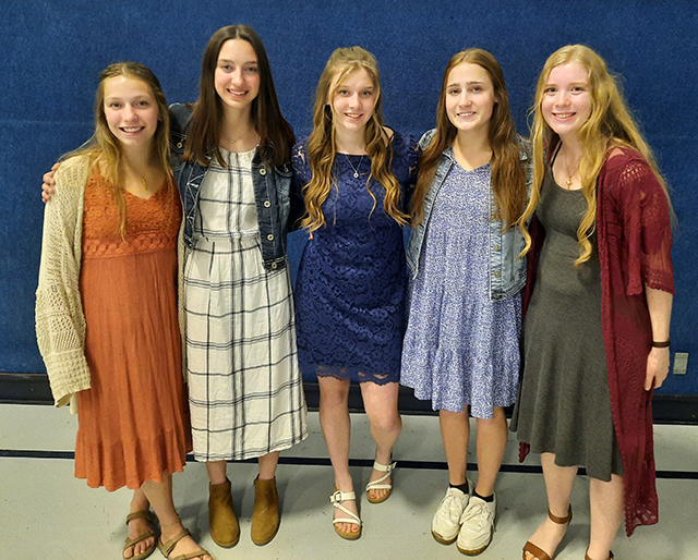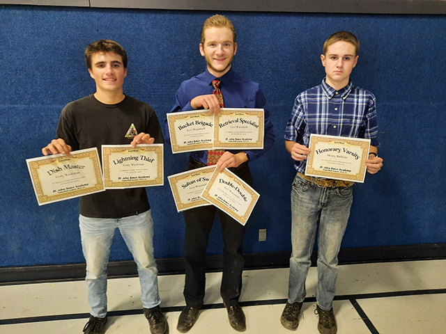 St. John Bosco Academy held their high school basketball banquet last week. Coaches were thanked for their time and effort, and awards were given. Girls’ awards were announced by Coach Alyssa Frei. The team votes for who best exemplifies each award. From left to right are Noelle Chmelik who received the Patriot Award which is for the player who best portrays the school’s motto of Excelsior. Savannah Perrin was Most Improved, Julia Wassmuth was voted Most Inspirational, Sarah Waters was voted Most Valuable Player and Rachel Sonnen received the 6th Man award. ![]() The boys’ awards are based on stats throughout the season and were awarded by Coach Alex Frei and Coach Kim Frei. Cody Weckman received the Dish Master award for highest average assists at 2.5 per game and the Lightning Thief award for highest steal average at 4.5 per game. Levi Wassmuth received the Bucket Brigade for the highest point average (14 per game), Retrieval Specialist for highest average rebounds (10 per game), Sultan of Swat for highest block average and the Double-Double award for averaging double digits in points and rebounds over the season. Henry Baldwin was awarded Honorary Varsity for attending all practices and games, and learning all the plays, despite being injured for the full season and unable to play. Photo provided by St. John Bosco Academy. |