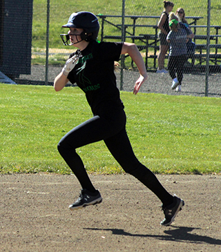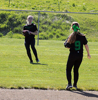 field conditions.![]() In the opener, Grangeville scored first on a leadoff walk and 2 out single. Prairie answered with a pair of runs. Martin led off with a walk and stole second, moved to third on a passed ball and scored on wild pitch to tie the game. Walker was walked and stole second. She moved to third on a passed ball. Uhlenkott was hit by a pitch. After an out, Walker scored on Lockett’s groundout to first. Grangeville tied it in the second after there were 2 outs. A hit by pitch, passed ball, wild pitch and then a passed ball on strike 3 to the next batters led to a run to tie the game at 2-2. In the bottom of the second Bailey Key led off with a walk. Kenna Granger reached on an error. Martin singled to right to score Key. After there were two out Schlader reached on a fielder’s choice as Granger scored before the tag. Neither team scored in the third. In the fourth Grangeville took the lead with 3 runs on 2 walks, a passed ball on strike 3 and a single. Prairie had a pair of baserunners in the bottom of the fourth but couldn’t score. Uhlenkott was hit by a pitch with 2 outs and Schlader walked before the third out was made. Grangeville added 4 more runs in the fifth on 2 hits, a walk and a hit batsman. In the bottom of the fifth Prairie sent 10 hitters to the plate before the game ended on the agreed upon time limit. Kalmbach led off getting hit by a pitch. After an out, Key was hit by a pitch and Granger was walked. Martin was walked to score Kalmbach. Key scored on a wild pitch then Walker tripled to right center to score both Granger and Martin. Uhlenkott singled to right to score Walker and tie the game. She stole second and went to third on a wild pitch. After Schlader drew a walk, another wild pitch scored Uhlenkott to give Prairie the lead. Schlader scored when Lockett reached on an error. Kalmbach then reached on an error that scored Lockett to put Prairie up 12-9. At that point the time limit was reached. Prairie had 3 hits in the game. Walker had a triple and 2 RBI. Martin had a single and 2 RBI. Uhlenkott had a single and an RBI. Schlader had 2 RBI and Kalmbach had an RBI. Lockett gave up 9 runs on 5 hits with 4 walks, 2 hit batters and 11 strikeouts. Grangeville 1 1 0 3 4— 9 5 3 Prairie 2 2 0 0 8—12 3 1 Game 2 vs. Grangeville In between games of the doubleheader, Prairie honored their two seniors, Chayla Christopher and Ember Martin.Martin stated the second game in the pitching circle and struggled to find the strike zone. She gave up a leadoff hit and then a walk. After an out she walked 4 straight batters. She was then lifted in favor or Rowland who gave up 3 straight hits before getting out of the inning. Grangeville scored 8 runs in the opening inning. Rehder led off the bottom of the inning with a single to right. After two fly ball outs, Uhlenkott and Schlader walked to load the bases. A wild pitch scored Rehder but then the inning ended on a strikeout. In the second inning Rowland gave up 3 walks and a single while getting just 1 out before Lockett went back to the circle. Lockett got 2 outs sandwiched around an error that scored a run. Grangeville wound up with 4 runs in the inning for a 1-12 lead. Prairie came back with 3 in the bottom of the inning. Mizer led off with a walk and Granger went in to courtesy run for her. After an out, Christopher singled to right. Rehder doubled to the wall in center to score both runners. Rehder went to third on the throw to the plate and then scored on a wild pitch to make it 4-12. Lockett set Grangeville down in order in the third. Prairie got back into the game with 4 runs in the bottom of the third. Schlader led off with a walk and Lockett reached on a dropped fly ball in left field. After an out, Rowland reached on an error with Schlader scoring. After a second out, Rehder walked and then Walker singled to right to score Kalmbach, who was courtesy running for Lockett and Rowland. Rehder moved to third on the play and then scored on a wild pitch to cut the deficit to 8-12. Lockett gave up a single in the fourth but stranded the runner at third. Prairie added a run in the bottom of the inning. Uhlenkott was hit by a pitch to lead off the inning. She went to second on a wild pitch and stole third. She scored when the throw to third went into left field.Lockett walked and Rowland later singled bup the runners were left on as the inning ended. Grangeville added a run in the fifth on 2 singles. In the bottom of the inning Martin had a 2-out double down the left field line but the inning ended on a grounder to first. The game also hit the time limit at that points giving Grangeville a 9-13 win. Martin gave up 6 runs on 1 hits with 5 walks in 1/3 of an inning. Rowland gave up 6 runs on 5 hits with 2 walks and a strikeout in 1 inning. Lockett gave up 1 run on 3 hits with no walks and 4 strikeouts in 3 2/3 innings. Prairie had 7 hits led by Rehder who had a double and a single and 2 RBI. Martin also had a double and single. Walker had a single and 2 RBI. Rowland and Christopher each had a single. Prairie ends the regular season with a record of 3-12 on the season, 1-9 in league play. They were to play at Potlatch on Tuesday, May 7 in a loser-out District game. If they won they would likely play Genesee at 3 p.m. Wednesday, May 8 at Genesee. Grangeville 8 4 0 0 1—13 9 3 Prairie 1 3 4 1 0— 9 7 5 ![]() Ember Martin takes a cut in the opener against Grangeville. ![]() Grace Uhlenkott connects for a hit against Grangeville. ![]() Ivy Walker heads for second for a stolen base. ![]() Kadence Kalmbach looks to throw the ball back to the infield after making a catch in right field. Also shown is second baseman Kenna Granger. Prairie Softball Schedule March 11-Orofino JV, there, 4:30 p.m., lost 14-1614-C.V., there, 4 p.m. 18-Kendrick, there, 4 p.m. 20-Pomeroy, there, 4 p.m. April 2-Lapwai, there, 4:30 p.m.4-Grangeville, there, 1+1, 4 p.m. 6-Potlatch, here (2) noon and 2 p.m. 9-Lapwai, there, 4:30 p.m. 12-Potlatch, at Airpo