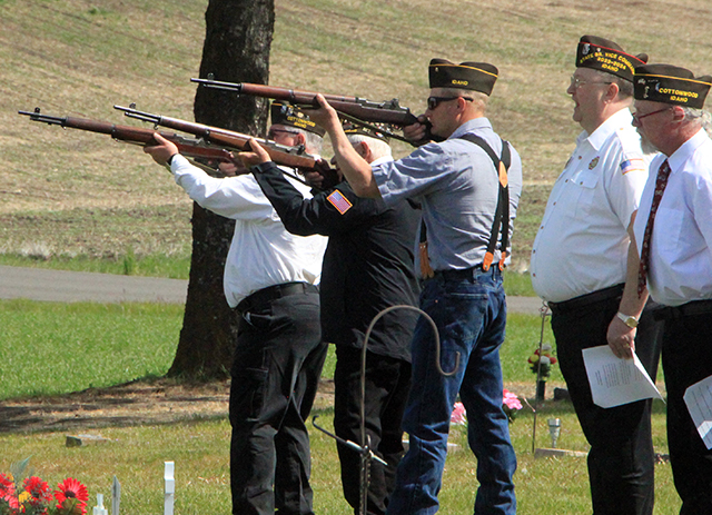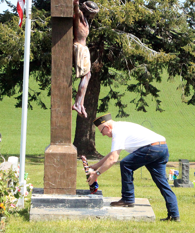 ![]() The VFW and American Legion line up prior to the ceremonies at the Ferdinand Cemetery. ![]() Roy Arnzen places the wreath at the Ferdinand Cemetery. ![]() Jim Schumacher reads the names of each veteran buried at the Ferdinand Cemetery. ![]() The rifle crew of Terry Cochran, Tom Nuttman and Ryan Mader fire a gun salute at the Ferdinand Cemetery. ![]() John Stalnaker reads "In Flander Fields" at the Ferdinand Cemetery. ![]() The VFW and Legion line up at the Keuterville Cemetery. ![]() Roy Arnzen places the wreath at Keuterville. ![]() Jim Schumacher reads the names of veterans buried at the Keuterville Cemetery. ![]() Ryan Mader, Tom Nuttman and Terry Cochran fire a gun salute at the Keuterville Cemetery. ![]() John Stalnaker reads "In Flanders Field" at the Keuterville Cemetery. |