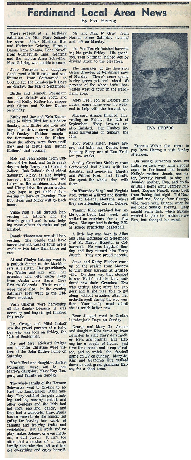 Eva Herzog's Ferdinand Local Area News from the Sept. 25, 1975 edition of the Chronicle. Click on it for a larger view. |