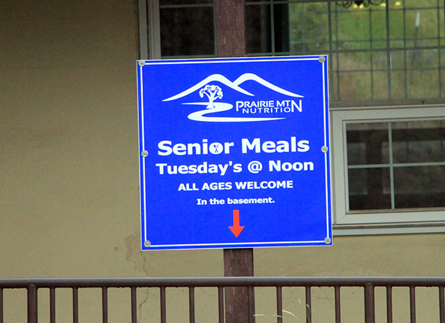 directing people to where the senior meals are served each Tuesday. Click on the photo for a larger view.