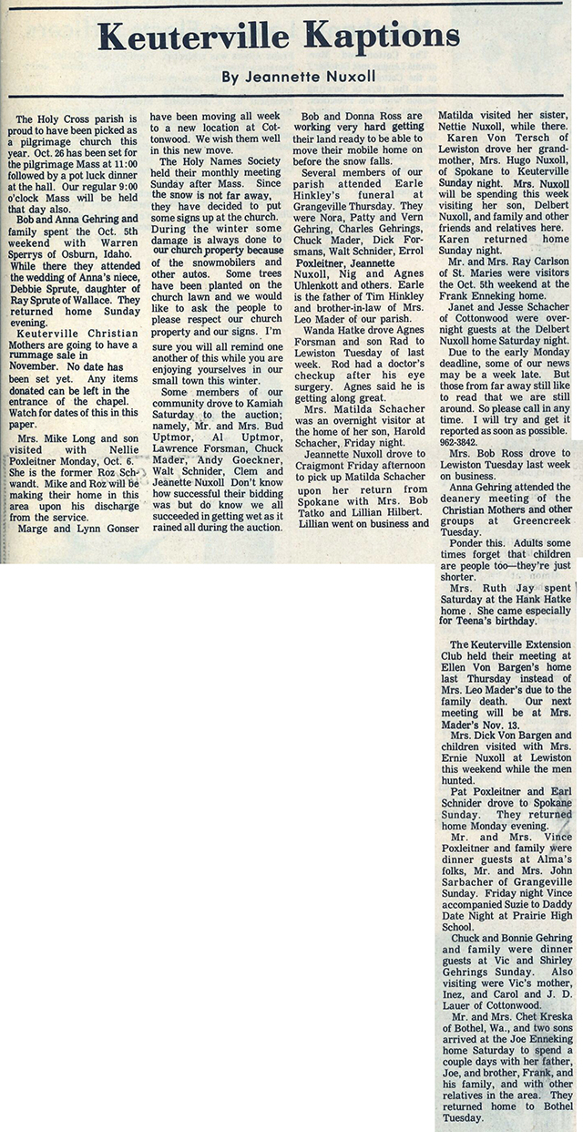 Keuterville News by Jeannette Nuxoll from the October 9, 1975