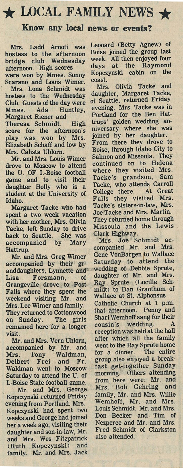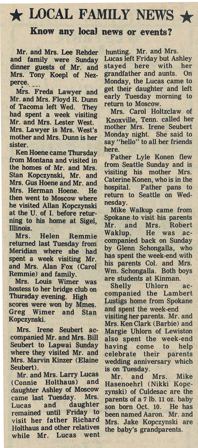Cottonwood Local Family New from the October 23, 1975 Chronicle. Click on the above for a larger view.