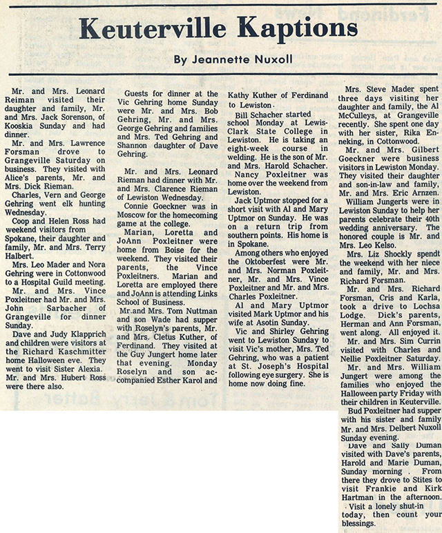 Keuterville Kaptions from the Nov. 6, 1975 Chronicle. Click on it for a larger view. |