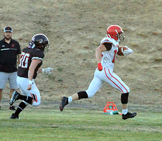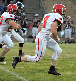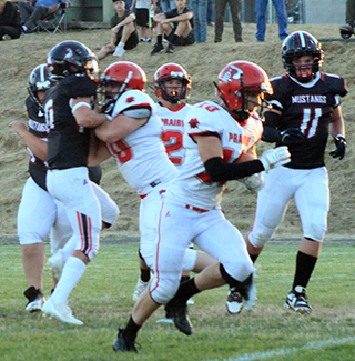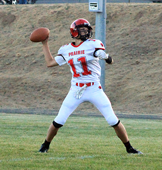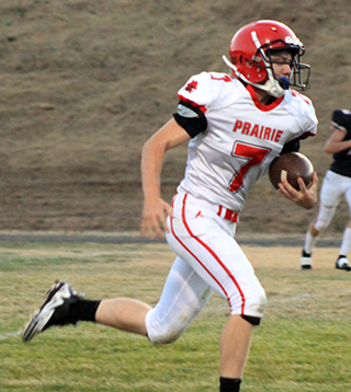 The Prairie football team opened their season with a 44-8 win at Deary on Friday, August 30. The Prairie defense dominated the Mustangs, holding them to just 110 yards of offense with 72 of those coming on their final drive against the JV defense that led to Deary’s only touchdown.The Pirates received the opening kickoff and looked like they might score on the first play but quarterback Briggs Rambo’s pass was just underthrown enough that Matt Wemhoff couldn’t come up with the catch. Prairie managed a first down on fourth and 1 at the Deary 44 when Rambo gained 3 yards on a sneak. After Rambo picked up 6 years on a keeper, Dylan Uhlenkott took over. He rushed 4 straight times. He was stopped on the first attempt for no gain but then ripped off runs of 12 and 14 yards to set up first and goal at the 9. He then scored on a pitch to the right on the next play. The 2-point pass attempt fell incomplete leading Prairie with a 6-0 lead. On the ensuing kickoff Levi Gehring wasn’t supposed to try an onside kick but that’s how it worked out with Levi McElroy recovering the ball at the 50. This time Rambo and Wemhoff connected for a 40 yard pass play down the left side. Chris Schumacher scored on a counter on the next play. Uhlenkott added the 2-pointer on a cutback run to give Prairie a 14-0 lead. Deary got their first offensive possession but was unable to move the ball and had to punt. The punt only went 12 yards before going out of bounds as Prairie took over on their own 49. After 2 incomplete passes and a 3 yard loss on a run, Prairie faced fourth and 13 from their own 46. Rambo connected with Wemhoff for 25 yards and a first down at the Deary 29. A false start and a 4 yard loss pushed them back to the 38. Uhlenkott gained 15 on the next play to se tup third and 3 at the 23. Rambo than completed a screen pass to Schumacher on the left side and Schumacher broke through for a touchdown. Rambo ran in the 2-pointer to make it 22-0 with 4:01 still left in the first quarter. Deary then mounted their first threat of the game as they picked up their initial first down of the game on a 28 yard run to the Prairie 22. The threat died 3 plays later on third and 11 when McElroy intercepted a pass at the 8 and returned it to the Prairie 40. After an incomplete pass, Uhlenkott swept around right end and broke loose for a 60 yard scoring run. Levi Gehring ran in the 2-pointer to give Prairie a 30-0 lead. Deary turned the ball over on downs on their next possession as a fourth down pass went long. Prairie took over on the Deary 49. Uhlenkott gained 18 on the first play. Gehring then ran twice for 8 total yads. Schumacher picked up 6. McElroy, in at quarterback in the second quarter, then gain 3 to the Deary 14. On the next play Schumacher scored on a 14 yard burst up the middle. The 2-point try was stopped but Prairie was now up 36-0. Deary got a first down on a pass interference penalty on their next possession but that was the only play they gained yardage as they were forced to punt on fourth and 17 from their own 38. Prairie took over at their own 25. They overcame a false start and a holding penalty as they drove down the field. Gehring did the bulk of the ball carrying as he gained 25 yards on 5 carries. He then caught a screen pass for another 7 yards to the Prairie 47. After a 1 yard gain, McElroy connected with Rambo for 9 yards. Schumacher then burst up the middle for 33 yards to set up first and goal at the 10. Uhlenkott scored on a run to the left on the next play. McElroy then passed to Phil Schwartz who made a great catch in the back of the end zone for the 2-pointer and a 44-0 lead. Deary fumbled the ball back on the ensuing kickoff return with Ashton Martin recovering the ball at the Deary 35. Gehring picked up 9 yards and Schumacher 4 yards for a first down but then the half ended. The entire second half was played with a running clock. Deary received the second half kickoff and fumbled on third down with Schumacher recovering at the Deary 31. Prairie had a fumble themselves that cost them 19 yards and they had to punt. Deary picked up a first down but then were stopped by the Prairie defense for 1 yard on fourth and 4. Prairie took over at the Deary 47. Schumacher picked up a first down with a 13 yard run but a sack and then an interception turned the ball back to Deary at the Mustangs’ 7 yard line. On fourth and 10 Deary had to punt with Prairie taking over at the 18 after an 11 yard punt. Lane Mader picked up 8 yards to the 10 on the first play then the JV offense started going the wrong direction. A fumble cost them 7 yards then quarterback Kade Quintal was sacked on fourth down giving Deary the ball at their own 28. Against the JV defense Deary was then able to mount their only scoring drive of the game. A 26 yard pass completion was followed by runs of 12, 20 and 13 yards to move the ball to the 2 yard line. They scored on the next play with just 35 seconds left in the game. They added the 2-pointer to make the final score 44-8. Prairie gained 211 yards rushing on 39 attempts led by Uhlenkott who had 135 yards on just 10 carries. Schumacher added 89 yards on 7 carries and Gehring had 50 yards on 10 carries. Rambo completed 3 of 9 passes for 88 yards while McElroy completed 2of 3 passes for 16 yards with 1 interception. Quintal was 0 for 1 passing. Wemhoff caught 2 passes for 65 yards. Schumacher caught 1 for 23. Rambo caught 1 for 9 and Gehring caught 1 for 7 yards. Deary had 83 yards rushing led by TJ Beyer who had 57 yards on 12 carries. Deary passers were 2 for 9 for 27 yards and an interception. Prairie is now 1-0 on the season. This week they travel to Fruitland where they will play Valley of Hazelton, a school they’ve played 3 times in the state playoffs and once before in the regular season. They are 2-2 so far against the Vikings, 1-1 in state championship games. The game is set to start at 5:30 p.m. Pacific Time. Prairie 30 14 0 0 -44 Deary 0 0 0 8 - 8 P-Uhlenkott