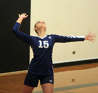 Schoo serving. She had an ace while Sarah Waters had a pair of kills