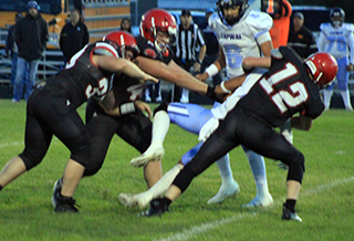 The Prairie football team rolled to a big win over Lapwai, 68-14, in their home opener Friday, Sept. 13 at Cottonwood. ![]() The game didn’t start very well for the Pirates as they had losses on 4 of their 10 plays on the their first possession. Positive plays of 21 yards on a scramble by quarterback Levi McElroy and 13 by Matt Wemhoff on an end around helped the Pirates move to the Lapwai 26 before turning the ball over on downs. The defense twice tackled Lapwai for loss and forced them to punt on their first possession. Prairie took over after the short punt at their own 45. Chris Schumacher picked up 8 yards on a run to the left. McElroy then picked up 4 for a first down. Levi Gehring gained 32 yards around right end to move the ball to the 11. Schumacher picked up 3 then 2 plays went for no gain and a false start set Prairie back to the 13. On fourth down McElroy completed a screen pass to the left to Wemhoff and he was able to take the ball into the end zone for the game’s first points. The 2-point try failed leaving Prairie with a 6-0 lead. On the ensuing kickoff and unintentional onside kick resulted in McElroy recovering the ball for Prairie at the Lapwai 44. McElory gain 9 on a first down keeper. Schumacher went up the middle for 3 and a first down at the 32. Gehring then took the ball right, cut back left and wound up outracing the defense to the end zone for a touchdown. Gehring ran in the 2-pointer to give Prairie a 14-0 lead. A facemask penalty on the 2-point try let Prairie kick off from the 45. A short kickoff went out of bounds at the Lapwai 41 letting Lapwai take over at the 46. Gehring and Schumacher tackled the Lapwai quarterback for a 4 yard loss on first down. After an incompletion, a flare pass was stopped for a loss of 1. On Fourth and 15 from the 41, Wemhoff sacked Lapwai quarterback Jereese McCormack for a 9 yard loss giving Prairie the ball at the Lapwai 32. A pass interference penalty gave Prairie a first down at the 18. Gehring went 10 yards around right end on the last play of the first quarter to set up second and inches. McElroy picked up 4 for a first and goal at the 4. A false start penalty set the Pirates back to the 9. Gehring gained 6 yards on a run to the left and then Schumacher went up the middle for 3 yards and a touchdown. The ensuing Prairie kickoff went to the 20 and Lapwai returned it to the 35. The defense again forced the Wildcats to go backwards. Schumacher and Jake Quintal combined to sack the quarterback for a 4 yard loss. A fumble and recovery led to a 2 yard loss. After a false start penalty, a bad snap to the quarterback resulted in a 14 yard loss. Lapwai wound up punting from their own 10. The punt only went 19 yards as Prairie took over at the Lapwai 29. On third and 12 from the 31, McElroy connected deep down the left side to Phil Schwartz for a 25 yard gain that set up first and goal at the 6. McElroy ran a keeper and scored on the next play. Schumacher ran in the 2-pointer to make it 30-0. An illegal block call on the onside kick attempt gave Lapwai the ball at the Prairie 44. On first down running back Julian Barros picked up 1 yard. That was Lapwai’s first play that gained yardage in the game. Barros picked up 10 on the next play for a first down. Lapwai got to the Prairie 24 for a fourth and 1. Gehring tackled McCormack in the backfield for a 4 yard loss to give Prairie the ball at the 28. After an incomplete pass, Schumacher gained 7 yards total on 2 runs for fourth and 3. A false start made it fourth and 8. Prairie still went for it and McElroy was forced to scramble and wound up completing a pass to Schumacher that went for 70 yards and a touchdown. McElroy passed to Schwartz for the 2-pointer to make it 38-0. Lapwai took over at the 50 after a 22 yard return. They had a couple of big plays to move to the Prairie 18. A false start penalty on Lapwai was followed by a 5-yard facemask penalty on Prairie on a sack. Wemhoff then sacked McCormack for a 7 yard loss to end the half. Lapwai got the ball to start the second half and went 56 yards in 3 plays for their first touchdown. They added the 2-pointer to make it 38-8. Prairie took over at their own 31 after a 10 yard return by Wemhoff. Two running plays netted 3 yards in losses. McElroy then threw a deep pass down the middle and connected with Wemhoff for what turned out to be a 72 yard touchdown. Gehring ran in the 2-pointer to put Prairie up 46-8. A
