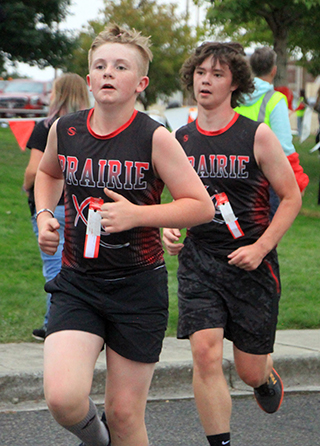 Prairie competes at Seaport Invite Updated Prairie Cross Country Schedule for 2024The Prairie Cross Country team competed at the Seaport Invite in Clarkston last Wednesday, Sept. 11. The top finishers for the high school team were Phineas Fitch, who placed 15th in the boys race at 19:14.27 and Evelyn Gehring, who placed 18th in the girls race at 24:46.38. The boys team placed 6th out of 8 teams with 148 points. Chase VonBargen was 30th in 20:22.02. Matthew Jones was 41st in 21:35.59. Kento Morita was 64th in 24:27.59. Landon Riener was 77th in 26:40.34. Kade Hansen was 81st in 28:52.88 and Onyx Lish was 82nd in 29:02.36. The girls team placed 7th with 121 points. Ella McLeod was 31st in 27:12.42. Reagan Brannan was 34th in 27:33.89. Callie Remacle was 38th in 28:48.14 and Lillianne Lustig was 43rd in 29:54.40. The junior high team competed at their first meet of the season. They have just 2 competitors, 1 boy and 1 girl. The boy, 7th grader Koyle Jones, had the best finish of the day for a Prairie runner as he finished 2nd in 9:41.62. 7th grader Madalynn VonBargen placed 33rd in the girls race in 13:35.73. The next competition for Prairie will be their own meet which will be next Wednesday, Sept. 25 at the Prairie Football/Track and Field complex. ![]() Phineas Fitch was the top boys finisher as he placed 15th. ![]() Evelyn Gehring was the top girls finisher as she placed 18th ![]() ![]() Chase VonBargen was 30th and Matthew Jones was 41st. ![]() ![]() Ella McLeod, left, was 31st and Reagan Brannan, right, was 34th ![]() ![]() Exchange student Kento Marita was 64th and Landon Riener was 77th. ![]() ![]() Callie Remacle, left, was 38th and Lillianne Lustig, right, was 43rd. ![]() Kade Hansen, left, was 81st and Onyx Lish, right, was 82nd. ![]() ![]() Prairie's only junior high runners are both 7th graders. At left, Koyle Jones finished 2nd in his race, while Madelyn VonBargen, right, finished 33rd in her race.