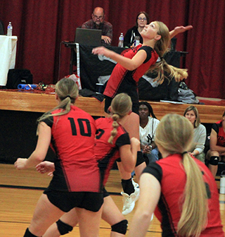 and a kill by Kylie Schumacher.![]() The teams traded points until another sideout kill by Lexi sent her to the service line. She had 2 aces while Kylie had 3 kills, including a block, for a 14-6 lead. Kamiah came back to pull within 3. The margin stayed at 3-5 points until Prairie led 22-17 after 2 aces by Mia Anderson. Kamiah then scored 4 straight to pull within 1 at 22-21. A kill by Lexi Schumacher made it 23-21 but Kamiah answered. A kill by Kylie Schumacher made it 24-22. After a kill by Kamiah, Prairie ended the opening set with a kill by Hailey Hanson. The second set was even until Kamiah boke it open with a 3-11 run that turned a 4-4 tie into a 7-15 lead. Prairie never really got back into that set as they got no closer than 5 before losing by 10. In the third set Kylie Schumacher opened the scoring with a sideout kill. Pecarovich then served Prairie to an 8-0 lead. She had 3 aces then Kylie Schumacher and Hanson each had 2 kills. Kamiah scored twice then Hanson scored another kill and Kaylie Lockett served 2 aces for an 11-2 lead. Kamiah was able to rally back and got the lead down to just 1 at 16-15 before Lexi Schumacher scored a sideout kill. After 5 more sideouts, Anderson went to the service line with a 20-18 lead. Lexi Schumacher scored 3 straight kills to get to 23-18. After a Kamiah sideout, Lexi scored 2 more kills to give Prairie a 25-19 win and a 2 sets to 1 lead. Kamiah scored first in the fourth set then Hanson scored a kill and Lexi Schumacher added 2 more for a 3-1 lead. After a sideout, Lexi Schumacher scored 3 more kills and Hanson added an ace for a 7-2 lead. Kamiah was able to again rally back and tied the set at 14-14. Prairie was able to keep them from taking a lead but the Kub were able to tie it again at 16 and at 17. Kylie Schumacher scored a sideout kill to make it 18-17 and Pecarovich then serve 4 straight points. She had an ace while Kylie Schumacher scored 3 kills for a 22-17 lead. Kamiah scored 2 points before Kylie Schumacher scored a sideout kill. With Lockett serving, Hanson scored a pair of kills to finish off the match. Lexi Schumacher had 31 kill and 2 aces in the match. Kylie Schumacher had 18 kills including a block. Hanson had 13 kills and 3 aces. Ellie Nuxoll had 4 kills. Pecarovich had 1 kill, 30 assists and 7 aces. Sydney Shears had 1 kill and 2 assists. Anderson had 23 assists and 2 aces. Beka Schumacher had an assist and Lockett had 4 aces. Prairie won the JV match 18-25, 25-22 and 15-10. Faith Cash got Prairie started against Kamiah by serving the Pirates to a 6-0 lead. She had 2 aces while Avery Kehler had 4 kills including a block. Kamiah came back though and finally took their first lead at 16-17 and went on to win by 7. Kamiah scored first in the second game but a kill each by Macie Uhlenkott, Nadia Cash and Beka Schumacher gave Prairie a 3-1 lead. Kamiah tied it but a kill by Kennedy Riener and 2 kills by Schumacher made it 6-3. Kamiah came right back to retake the lead and led 7-9 when they missed a serve. An ace by Faith Cash and a block by Kehler made it 10-9. After Kamiah tied it, Kehler scored another kill to send Halee Rowland to the service line. Rowland served Prairie to a 17-10 lead. She had 2 aces while Kehler had a kill and a block and Nadia Cash had a pair of kills. Kamiah came back to pull within 1 at 21-20. At that point Rowland scored a sideout kill. 4 more sideouts left the score at 24-22 with Rowland again at the service line. She served an ace to give Prairie the win and even the match. In the third set Erica Schumacher served 2 aces and Schumacher added a kill for a 3-0 lead. Scoring went back and forth until Schumacher scored a sideout kill to make it 6-4. Schumacher then went to the service line and Prairie took a 10-4 lead on 2 aces plus 2 kills by Kehler. Kamiah was able to get within 3 at 11-8 and 12-9 but got no closer. A kill by Schlader and a block by Schumacher made it 14-9. After a sideout, Schumacher scored the match winning kill. The Pirates won a C match against Clarkston 25-17, 25-9. Vs. Kendrick In the match against new league member Kendrick, Lexi Schumacher racked up 15 kills and 32 digs while posting a near-perfect 15-for-16 mark from the serving line. Hanson added14 kills, including 7blocks. “It was a good night,” Prairie coach Julie Schumacher said. “Everyone played very well and pitched in.” Prairie also beat Kendrick in the JV match and the C team defeated Orofino. At Potlatch All we have from this match are the scores given at the start of this article. Prairie is now 4-3 in league and 7-5 overall. ![]() Kylie Schumacher goes up for a spike against Kamiah. Also shown are Hailey Hanson, Sydney Shears and Lexi Schumacher. ![]() Hailey Hanson spikes the ball against Kamiah. Also shown are Tamden Pecarovich and Sydney Shears. ![]() Lexi Schumacher goes up for a spike against Kamiah. Also shown are Ellie Nuxoll, Tamden Pecarovich and Sydney Shears. ![]() Beka Schuamcher goes up for a spike. Also shown are Kylie Schumacher, Mia Anderson and Hailey Hanson. ![]() Mia Anderson sets the ball against Kamiah. Behind her is Beka Schumacher. ![]() Sydney Shears winds up for a spike against Kamiah. Also shown are Ellie Nuxoll and Tamden Pecarovich. ![]() Tamden Pecarovich sets the ball. Also shown is Kylie Schumacher. JV games start at 6, followed by Varsity unless indicated
