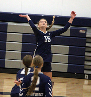 set, which was dominated by the Patriots.Bosco jumped out to a 4-0 lead behind 3 kills from Savannah Perrin and a kill by Noelle Chmelik. ![]() After a trade of bad serves, Rachel Sonnen served 2 aces for a 7-1 lead. After another trade of sideouts, Perrin served 2 aces and Presley Schoo and Miah Mager each added a kill for a 12-2 lead. Bosco lead 15-5 when Schoo went to the service line. Chmelik scored a kill then Schoo served 4 straight aces for a 20-5 lead. Highland scored a sideout but Sonnen scored a kill and Sarah Waters served 2 aces and Sonnen added another kill to get to set point at 24-6. Highland fought off 3 set points before Chmelik scored the set-winning kill. In the second set Sonnen served an ace to give Bosco a 1-0 lead. The serve then went back and forth until Chmelik scored a kill to tie it at 7 and then went back to serve. She served 4 aces while Perrin had a pair of kills as Bosco took a 13-7 lead. It was 16-11 when Julia Wassmuth took her turn to serve. She had 3 aces while Waters had 2 kills and Wassmuth added a free ball kill to make it 22-11. Highland then scored 3 straight points before back to back kills by Waters made it 24-14. Highland fought off 1 set point before Waters smashed a spike for the winning kill. In the third set Bosco led early at 5-2 after 3 kills by Waters and another by Catherine Seubert. Highland then had their best stretch of the night with 6 straight points for a 5-9 lead. Waters scored on a tip then Wassmuth served 2 aces and Sonnen and Waters each added a kill to put Bosco back on top at 11-9. Highland scored 4 straight to retake the lead and the lead then traded hands 3 more times. At 16-17 Perrin scored a sideout kill. Chmelik then jump-served a couple of aces and Wassmuth and Perrin each added a kill to make it 21-17. Highland scored 2 then Sonnen scored on a tip and then served an ace to make it 23-19. After a missed serve on each side the score was 24-20 and at match point. Highland fought one off then Waters scored the match winning kill. Waters had 16 kills, 1 assists and 4 aces in the match. Perrin had 7 kills and 2 aces. Sonnen had 5 kills, 1 assist and 4 aces. Chmelik had 4 kills 18 assists and 6 aces. Wassmuth had 4 kills, 14 assists and 5 aces. Schoo had 2 kills and 4 aces. Seubert had 1 kill and 1 ace. Mager had 1 kill and 1 assist. St. John Bosco is now 3-5 on the season and 3-4 in league play. The Patriots also won the JV match 25-14, 25-18, 12-15. CeCe Remacle served the JV to a 3-0 lead with 2 aces plus a kill by Perrin. Bosco never trailed in the first set. The set was still close though until Madeline Wassmuth served 5 straight points. She had 2 aces while herself, Seubert and Catherine Beckman each had a kill to make it 21-11. Beckman wound up serving the set-winning ace. Schoo scored a sideout kill to open the second set and Remacle followed with an ace to make it 2-0. Highland then tied it at 2 and again at 4, 6 and 7. The Huskies finally took their first lead at 7-8 on an ace. They led by as many as 3 at 9-12, 12-15 and 15-18. At 15-18, Seubert scored a kill and Madeline Wassmuth went back to serve. That was it for Highland as Wassmuth served out the set to clinch the match win. She had 6 aces, including the set winner. Remacle and Beckman each added a kill. In the anticlimactic third set, Bosco’s intensity level dropped and they led just twice in the set, at 2-1 and again at 7-6. The kept it close as they tied it at 7, 8, 9, 10, and 12 before Highland scored the final 3 points of the set. ![]() Rachel Sonnen winds up for a spike against Highland as Savannah Perrin looks on. ![]() Miah Mager makes a pass against Highland as Julia Wassmuth looks on. ![]() Julia Wassmuth makes a pass against Highland in the new Angelus Center gym. ![]() Noelle Chmelik pushes the ball over the net. Also shown are Savannah Perrin and Rachel Sonnen. ![]() Presley Schoo goes up for a spike against Highland. Looking on are Sarah Waters and Julia Wassmuth. ![]() Sarah Waters tips the ball over against Highland. Also shown are Noelle Chmelik and Rachel Sonnen. AUGUST