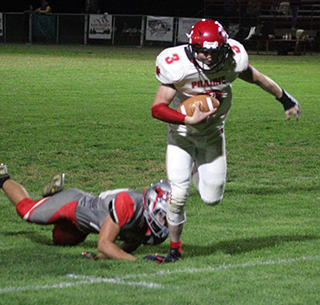 Dylan Uhlenkott on the way to scoring the first of his 5 touchdowns at C.V. See story at left.