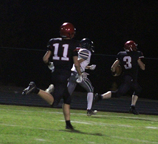 Dylan Uhlenkott rushed for 350 yards and scored 4 touchdowns to lead the Prairie Pirates to a 46-32 win over Potlatch at Cottonwood Friday, Oct. 11. ![]() The game didn’t start well for the Pirates as Potlatch received the opening kickoff and scored on the second offensive play of the game. After gaining 3 yards on a first down run, Potlatch quarterback Jay Marshall then tossed a screen pass to the left to Ben Johnson who went 64 yards for a touchdown. Marshall ran in the 2-pointer for a 0-8 lead. On Prairie’s first offensive play of the game, quarterback Levi McElroy’s pass to Matt Wemhoff was intercepted by Potlatch at the Loggers 35 and returned to the Prairie 41. Potlatch moved the ball down to the 15 when the drive stalled. A 5 yard loss by Marshall led to a fourth and 12 at the 17. Johnson was then stopped after a 9 yard gain with Uhlenkott making the tackle as Prairie took over on downs at the 8. A 17 yard pass completion to Uhlenkott was wiped out by a penalty. That led to a punt from the 21. Potlatch took over at the Prairie 40 and faced a fourth and 7 at the 37. A bad snap led to a 15 yard loss and Prairie took over at the Potlatch 48. Uhlenkott picked up 6 yards and Chris Schumacher gained 4 for a first down. McElroy picked up 3 then Uhlenkott got rolling. He picked up 16 on a pitch to the right. On the next play Uhlenkott went to the right, reversed his field to the left and went 19 yards for Prairie’s first touchdown. Uhlenkott ran in the 2-pointer to tie the game at 8-8. Potlatch answered right back with 4 running plays netting 11 yards and a first down before Johnson caught another screen pass and went 48 yards for a touchdown. The 2-point pass fell incomplete leaving Potlatch with an 8-14 lead. Prairie took over on their own 25 and picked up a couple of first down out to the 50 before going backward. A fumble cost them 6 yards then a holding penalty 4 yards behind the line of scrimmage moved them back to the 30. Another fumble saw them facing fourth down and 35 from their own 25. Coach Ryan Hasselstrom had previously told Uhlenkott if he was punting and saw an opening to take off with it. We’re sure he wasn’t thinking about needing 35 yards for a first down. However Uhlenkott made it pay off as he wound up going 75 yards for the tying touchdown. The 2-point pass failed leaving the score knotted at 14-14. Potlatch had a 41 yard pass completion on their ensuing possession as they moved down to the Prairie 12 before Wemhoff and Carter Shears teamed up to stop Marshall for just 1 yard on fourth down and 2. Prairie took over at their own 11. McElroy gained 3, Uhlenkott 6 and Schumacher 5 for a first down at the 25. Uhlenkott then took a pitch to the right and went 55 yards before being tackled at the Potlatch 20. A holding penalty set the Pirates back and they wound up facing fourth down at the 27. McElroy’s pass was intercepted at the 2 yard line. Potlatch would have been better served if they had just knocked the pass down. Potlatch wound up facing a fourth and 5 at the 7 and had to punt. Wemhoff broke through and blocked the punt straight up in the air. Jake Quintal just had to wait for it to come down in his hands in the end zone for a touchdown to give Prairie their first lead of the game with 23 seconds left in the half. Uhlenkott ran in the 2-pointer to give Prairie a 22-14 halftime lead. Prairie received the second half kickoff but a holding penalty forced them to punt from their own 35. The ball went out of bounds after just 12 yards. Potlatch had an incomplete pass and an illegal shift penalty but Marshall then found Trey Magallon open over the middle for a 52 yard scoring play. Prairie stopped the 2 point run as they held on to a 22-20 lead. Prairie took over after the kickoff at their own 28. Uhlenkott converted a fourth and 2 with a 12 yard run around right end. Prairie then faced a fourth and 4 at the Potlatch 46 when Uhlenkott again took a pitch to the right and went 46 yards for his third touchdown. McElroy passed to a wide open Wemhoff in the end zone to make it 30-20. Levi Gehring kicked the ball out of bounds and Prairie was made to kick it again from the 35. This time Potlatch’s return man fumbled at the 30 and Gehring recovered for the Pirates. McElroy picked up 15 yards to set up a first down at the 15. On fourth and 5 from the 10, Uhlenkott was stopped 1 yard short and Potlatch took over at their own 6. The defense forced the Loggers to punt from the 10 and Prairie took over at their own 39. Uhlenkott