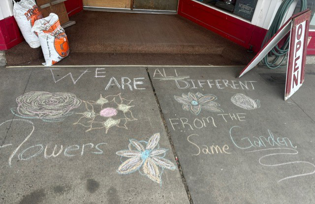 messages on sidewalks at several participating businesses in Cottonwood