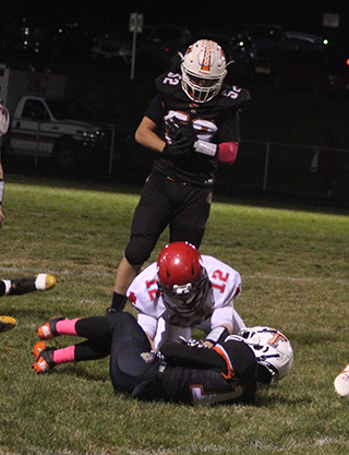The Prairie football team came away with a 63-8 win at Troy on Friday, Oct. 18. ![]() The win clinches that Prairie will finish no worse than third in the White Pine League standings and would finish second if they could beat Kendrick this Friday, Oct. 25. Prairie didn’t get off to a very good start in the game as they fumbled the opening kickoff, giving Troy the ball at the Prairie 30 yard line. However the defense stepped up and Briggs Rambo stopped a pass receiver in the backfield for a 3 yard loss and Matt Wemhoff then sacked quarterback Payton Christenson for a 6 yard loss forcing a fourth and 18 at the 38. Dylan Uhlenkott then blitzed the quarterback forcing an incompletion on fourth down. Prairie took over at the 38 and Uhlenkott converted a third and 8 with a 20 yard run to the right. A fumbled snap on the next play however gave Troy the ball back on their own 40. Two sacks by Wemhoff for losses of 17 yards plus a running play that was stopped for -3 yards had Troy punting on fourth and 30. The punt traveled just 19 yards as Prairie took over at the Troy 39. After an incomplete pass, Uhlenkott burst through the middle for 39 yards and the first of his 4 touchdowns. Prairie then had Uhlenkott attempt to kick the extra point but it was blocked leaving Prairie with a 6-0 lead. Troy took over on their own 35 after the kickoff and again went backwards. Christenson was stopped for a 6 yard loss and then sacked by Wemhoff for a 5 yard loss forcing a punt on fourth and 21. Levi Gehring returned the punt 25 yards to the Troy 20. Quarterback Levi McElroy was sacked for a 9 yard loss on first down but Uhlenkott then took a pitch to the left and went 29 yards for his second touchdown. This time his extra point kick was good and Prairie led 13-0. Troy started their next possession at their own 16. After a 1 yard gain, they had a loss of 4 yards and then a fumbled snap led to a loss of 6 as Troy punted again on fourth and 19. Prairie took over at the Troy 49. Chris Schumacher gained 6 on first down but McElroy was then sacked leading to a fourth and 10. McElroy then made his first pass completion of the game as he connected with Wemhoff on the left side. Wemhoff took the pass 49 yards for a touchdown on the first play of the second quarter. This time Uhlenkott ran in the 2-pointer for a 21-0 lead. Troy began their next possession on their own 36. This time they didn’t lose any yardage but 3 straight incomplete passes led to a punt on fourth and 10. Prairie took over at their own 43. Schumacher picked up 6 yards and McElroy scrambled for a 1 yard gain. On third and 3, McElroy connected with Gehring for a 10 yard gain and a first down. Uhlenkott then went around left end for 25 yards to the Troy 15. McElroy then connected with Gehring in the end zone for a touchdown. The kick attempt was blocked leaving Prairie with a 27-0 lead. Troy started on their own 45 after a short kickoff. An encroachment penalty moved the ball to the 50. After 3 incomplete passes and a 1 yard loss on a run, Prairie took over at the Troy 49 on downs. After 2 incomplete passes downfield, McElroy completed a short pass to the left to Schumacher who took the ball 49 yards for a touchdown. Uhlenkott ran in the 2-pointer to make it 35-0. Troy started at their own 48 after another short kickoff. A false start set them back 5 yards and after 3 incompletions, they punted. Prairie took over at their own 35. Uhlenkott burst up the middle for 40 yards to the Troy 25. Schumacher gained 7 yards then 2 more after an incompletion. A false start turned a fourth and 1 into a fourth and 6 at the 21. McElroy ran a keeper around left end and wound up not only converting the first down but scored a touchdown. McElroy then passed to Schumacher for the 2-pointer for a 43-0 lead. Prairie kicked deep this time and Troy took over at their own 20. A 10 yard loss on an end around and a false start penalty set them back to their own 5. After their longest offensive play so far, a 10 yard pass play, they wound up facing fourth and 14 at their own 16. They decided to go for it and cam up 10 yards short as Uhlenkott tackled the runner at the 20. McElroy completed a pass for 11 yards to Rambo to set up first and goal at the 9. Uhlenkott then picked up his third touchdown on a run up the middle. The 2-point pass failed as Prairie now led 49-0 with 56 seconds left in the half. The entire second half was played with a running clock that only stopped on the quarter change and timeouts. Troy gained 15 yards on the final play of the half but they were still 45 yards short of the goal line. Troy