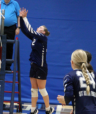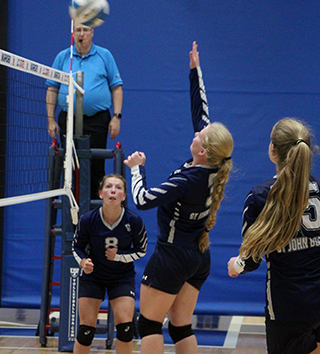 Lady Patriots win 2 of 4 The St. John Bosco Lady Patriots won as long as they weren’t playing Genesee this past week. On Senior Night on Wednesday, Oct. 16, they lost to Genesee 12-25, 22-25 and 17-25. At the District Tournament at Lewiston on Saturday, Oct. 19, they beat Highland 26-24, 25-19 and 25-15 and then upset a Deary team that had beaten them twice during the season, 25-15, 25-17 and 25-17. Then on Monday, Oct. 21, they lost to Genesee 10-25, 14-25 and 9-25. They were to play a loser out match against Nezperce on Tuesday, Oct. 22. Senior Night against Genesee Seniors Sarah Waters, Noelle Chmelik, Rachel Sonnen and Julia Wassmuth were honored before the varsity match.![]() The first set started well as Noelle Chmelik scored a sideout kill and then served an ace. The lead didn’t last long though as Genesee scored 3 straight. Waters scored a kill to tie it then Genesee took the lead for good. They built a 4-11 lead and then slowly added to the lead until they won the set by 13. In the second set Julia Wassmuth scored a kill for a 1-0 lead. After Genesee tied it, Wassmuth scored another kill for a 2-1 lead. Genesee took the lead at 3-4 and built it to 4-11. Bosco got back within 4 at 8-12 after a pair of kills by Waters and an ace by Waters and a kill by Savannah Perrin. Genesee pushed the lead to 7 at 9-16 then Perrin scored a sideout kill and Sonnen served 4 straight aces to get Bosco back within 2 at 14-16. After a sideout, a kill each by Wassmuth and Waters cut the deficit to 1 at 16-17. Bosco was able to tie the score at 19 after 2 kills by Waters and an ace by Wassmuth. A missed serve then gave Genesee back the lead and they never gave it up as they won by 3. Bosco never led in the third set as Genesee scored the first point. A kill by Sonnen tied it then Genesee scored 4 straight for a 1-5 lead. They built a 3-10 lead. Bosco was able to get back within 3 at 10-13 after 2 kills by Chmelik and a block by Waters. Genesee then pulled away and led by as many as 10 at 14-24 before winning by 8. Bosco fought off 3 match points before succumbing as Catherine Seubert, Chmelik and Waters each scored a kill. Waters had 11 kills, including a block plus 2 aces. Chmelik had 5 kills, 14 assists and 1 ace. Perrin had 5 kills. Wassmuth had 4 kills, 9 assists and 3 aces. Seubert had 3 kills. Sonnen had 2 kills, 1 assist and 4 aces. Miah Mager had 1 kill and 2 assists. Presley Schoo had 1 kill. The JV team split their final match of the season 25-19, 12-25. Schoo scored a set opening kill and CeCe Remacle served 2 aces for a 3-0 lead. After a sideout, Madeline Wassmuth scored a kill and Schoo served 4 straight aces for an 8-1 lead. Genesee came right back with 7 straight points to tie it and eventually took the lead at 11-12. The lead traded hands 3 times and was tied at 18-18 when Perrin scored a kill to put Bosco in the lead for good. Madeline Wassmuth then served 3 straight points with Remacle scoring a kill and combined with Perrin on a block. Catherine Beckman added a kill to make it 22-18. After a sideout, Genesee then bricked a serve and Seubert served 2 aces to finish the set. Bosco led only once in the season set and that was at 5-4 after a back row kill by Miah Mager. They fell behind by as many as 9 at 13-22 before rallying to make it close. Seubert scored a sideout and then served 3 straight on an ace and a kill each by Schoo and Remacle to get within 5 at 17-22. After a sideout and then a missed Genesee serve, Perrin served 3 aces and Schoo added a kill to get within 1 at 22-23. Genesee then scored the final 2 points to salvage a split. Vs. Highland at District Bosco opened District play