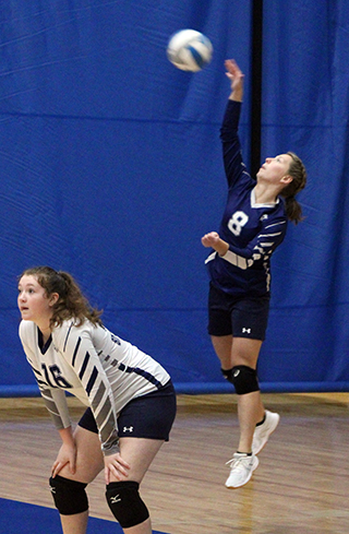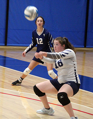 gave up 7 of the next 8 to fall behind 3-7.They rallied back to within 6-7 but then Genesee scored 6 straight to take control as they scored 18 of the final 22 points of the set. In the second set Bosco again scored the first 2 points. They then fell behind 4-5 but with Sonnen serving they took an 8-5 lead. They held the lead until Genesee tied it at 12-12. A missed Genesee serve put the Patriots back on top but it was the final time in the set. Genesee scored the next 4 points and gave up just 1 point the rest of the set as they closed it out 1-13. In the third set the Patriots made it 3 for 3 in scoring the first point as Waters, who was back with the team, score a kill. Genesee then scored 3 straight and 11 of the next 12 points to take a 2-11 lead. Genesee extended the lead to 3-15 and 5-22 before going on to win by 16. The Patriots are now 9-9 on the season. ![]() Sarah Waters goes for a back row hit against Genesee on Senior Night. Also shown is Miah Mager. ![]() Julia Wassmuth at the net against Deary at District. Also shown is Catherine Seubert. ![]() Miah Mager makes a pass against Deary at District. Also shown is Savannah Perrin. ![]() Noelle Chmelik jump serves against Deary at District. Also shown is Miah Mager. ![]() Presley Schoo spikes the ball against Deary at District. Also shown is Catherine Seubert. ![]() Rachel Sonnen goes for a spike against Deary at District. Also shown are Noelle Chmelik and Presley Schoo. Patriots Volleyball schedule for 2024