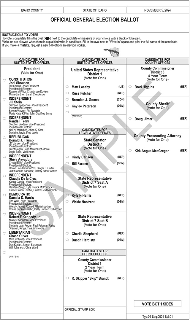 The front side of the ballot for next Tuesday's election. Click on the photo for a larger view.