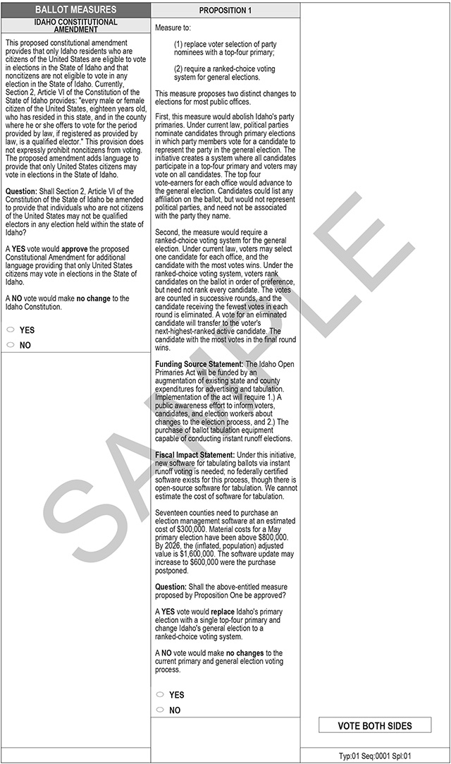 The back side of the ballot for next Tuesday's election. Click on the photo for a larger view.