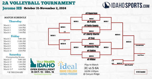Other first round matchups are #2 seeded Butte County against #7 Liberty Charter; #1 Troy against #8 Genesis Prep and #4 Oakley against #5 Wilder. If Prairie wins they would play the Butte County-Liberty Charter winner at 1:30 p.m. on Friday. If they lose they would play that matchups loser at 9 a.m. on Friday. See bracket below. St. John Bosco Volleyball