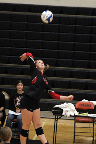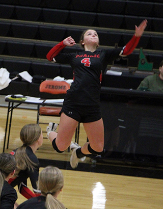 The Prairie Lady Pirates won 1 of their 3 matches at State with the two losses coming in heartbreaking fashion at Jerome High School Thursday and Friday, Oct. 31 and Nov. 1. They lost to Hagerman 18-25, 21-25, 25-17, 26-24, 15-17 on Thursday. On Friday they defeated Liberty Charter of Nampa 25-12, 25-18, 25-16. Later on they were eliminated by Oakley 23-25, 25-20, 25-19, 17-25, 15-17. Oakley went on to beat Hagerman and Troy before losing to Butte County to finish second at State. Vs. Hagerman It was a rough start to the tournament as the 6th