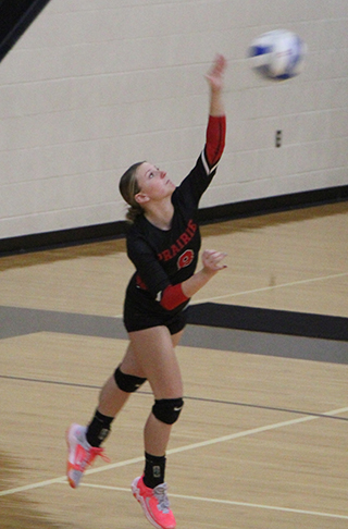 Hailey Hanson. ![]() Hagerman then scored 5 straight points to go up by 6. Prairie never really threatened after that in the opening set. They fell behind 1-7 in the second set but rallied back to tie. A kill by Kylie Schumacher was followed by 3 aces from Tamden Pacarovich and Kylie added another kill to tie the set at 11-11. Hagerman responded with 8 straight points. Prairie was able to get back within 3 at 19-22 after a kill each by Lexi and Kylie Schumacher, and again at 20-23 and 21-24 before Hagerman scored the set-winning point. To that point Prairie had yet to hold a lead. In the third set Hagerman scored first but a kill each by Lexi and Kylie Schumacher gave Prairie their first lead of the tournament at 2-1. After Hagerman tied it, Shears scored a kill and Kaylie Lockett served an ace for a 4-2 lead. After 8 straight sideouts, a kill by Kylie Schumacher made it 9-6. Hagerman got back within 1 at 10-9 then Pecarovich scored a free ball kill and Lockett served 2 aces. Lexi Schumacher added 2 kills for a 15-9 lead. Hagerman got back within 3 at 18-15 and against at 19-16 and 20-17. At 20-17, Sierra Oliver scored a kill on a dig and Pecarovich then served out the set . She had 1 ace and Kylie Schumacher scored 3 kills including the final 2 points of the set. In the fourth set Prairie fell behind 1-4 before Hagerman bricked a serve. Lockett then served Prairie to an 8-4 lead. She had an ace to start the run then Lexi Schumacher had 4 kills and Hanson added another. Hagerman got within 2 at 9-7 but a kill by Lexi Schumacher, an ace by Mia Anderson, a block by Avery Riener and 2 more aces by Anderson made it 14-7. Hagerman came all the way back though and took a lead at 22-23. They bricked a served but Prairie was called for a double hit to give Hagerman a chance at match point. Lexi Schumacher scored a kill to tie it at 24-24. A kill each by Kylie Schumacher and Ellie Nuxoll gave Prairie the set and tied the match at 2 sets each. A block and then a kill by Hanson gave Prairie a 2-0 lead in the fifth set. Hagerman answered with 4 straight to take their first lead. A kill each by Kylie Schumacher, Lexi Schumacher and Hanson put Prairie back on top 5-4. Prairie held the lead and after a tip by Kylie Schumacher and an ace by Pecarovich were at match point at 14-10. That’s when everything fell apart. Hagerman scored a kill for the sideout. Prairie hit it into the net then Hagerman served an ace. After a Prairie timeout, a spike attempt went long, tying the score. Hagerman then served out of bounds to give Prairie 1 more match point chance. A long volley ended with Hagerman hitting the sideline with a spike to tie it. A Prairie spike went wide and then on Hagerman’s first match point chance, they blocked a Prairie spike attempt to win it. Lexi Schumacher had 30 kills in the match with 3 assists and 3 aces. Kylie Schumacher had 27 kills with 2 assists. Shears had 8 kills and 2 assists. Hanson had 8 kills, including 3 blocks, and 1 ace. Nuxoll had 4 kills, including 1 block. Riener had 2 kills, including a block, and 1 assist. Oliver had 2 kills and 1 assist. Pecarovich had 1 kills, 37 assists and 7 aces. Anderson had 1 kills, 25 assists and 3 aces. Lockett had 4 aces. Vs. Liberty Charter Early Friday morning