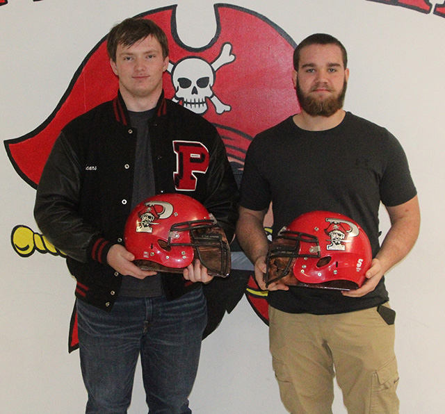 ![]() Shown are the Prairie football award winners for the varsity and JV teams. Front from left are Chris Schumacher, Varisty Pirate Award; Zach Schumacher, JV Pirate Award and Jake Quintal, varsity Offensive Lineman of the Year. Standing from left are Matt Wemhoff, Varsity Defensive Lineman of the Year and Defensive Player of the Year; Lane Mader, JV Defensive Player of the Year; Kade Quintal, JV Offensive Player of the Year; Max Rehder, JV Most Inspirational and Dylan Uhlenkott, Varsity Offensive Player of the Year and Varsity Most Valuable Player. ![]() Carter Shears and Jake Quintal received helmet plaques as 4-year letterman for the Prairie football team. PIRATES BOYS BASKETBALL SCHEDULE FOR 2024-25
