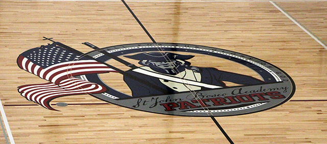 The center court logo was designed and painted by alumnus Nicole Frei.