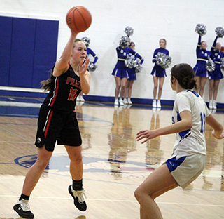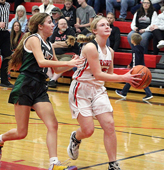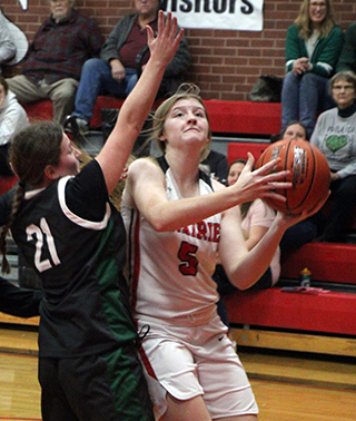 straight baskets. Kylie Schumacher converted a 3-point play and Lexi Schumacher added a lay-up after a steal by Hailey Hanson to make it 14-0.