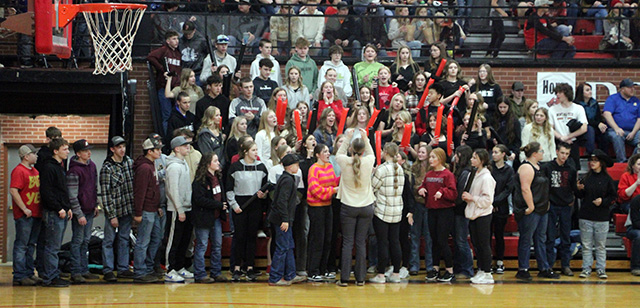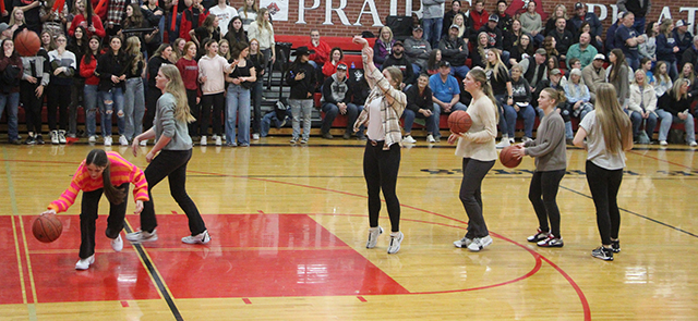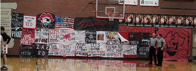 Idaho County Shootout photos Prairie's wall decorations on the north wall of the gym. Grangeville had theirs on the south wall. ![]() The Prairie student body was on their feet for the entirety of both games. ![]() During halftime of the boys game the girls teams had a free throw shooting contest. From left, Priarie had Aubree Rehder, Sage Elven, Lexi Schumacher, Kylie Schumacher, Mia Anderson and Hailey Hanson shooting. ![]() During halftime of the girls game the boys teams participated in a mattress race, where you'd get a running start and hit the mattress and try to push it as far as possible. |
