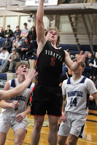 lay-up each by Schwartz and Shears.After a Logos basket, Rambo scored a pair of baskets to give Prairie their first lead at 13-11. Logos then scored to tie it at 13 at the end of the first quarter. Prairie dominated the first 5:30 of the second quarter, outscoring Logos 21-4. A basket by Forsmann, 2 baskets by Rambo and a 3 by Schwartz gave Prairie a 22-13 lead. After 2 baskets by Logos, Prairie got 12 straight points to take a 34-17 lead. Rambo converted a 3-point play and then scored on a putback. Gehring scored a lay-up off of a full-court inbound feed after a Logos turnover. Rambo scored again and then stole the ball which led to a 3-point play by Gehring for a 17-point lead. Logos then scored 10 straight points before Schwartz made his second 3 of the quarter. Logos then scored 3 more points to pull within 7 at 37-30 at the half. The Knights came out and scored the first 6 points of the second half to cut what once was a 17 point lead down to 1 at 37-36. Rambo scored a putback but Logos then scored 8 straight points to take a 39-44 lead. A free throw by Schwartz and a basket each by Wemhoff and Shears got the Pirates back within 3 at 43-46. Logos scored but Prairie answered with 2 free throws by Wemhoff. A basket by Logos made it 45-50 at the end of 3 quarters. A basket each by Rambo and Schwartz got Prairie within 1 at 49-50. Logos scored but Wemhoff answered to again cut the lead to 1 at 51-52. Logos then put together a 1-10 run to push their lead to double digits at 52-62. Prairie then put their own streak together as Schwartz and Forsmann each scored a putback to cut the lead to 6. A 3 by Schwartz and a lay-up by Wemhoff off a long outlet pass by Forsmann, again cut the lead to just 1 at 61-62 with 40 seconds left. Logos scored with 21 seconds left for a 3-point lead. Prairie then tried to set up a game-tying 3 but Logos stole the ball and scored to make the final margin 5 points. Rambo led the Pirates with 22 points and also had 11 rebounds. Schwartz added 16 points. Shears and Gehring scored 7 each with Wemhoff scoring 5 and Forsmann 4. Logos had a 32-39 rebounding edge. Forsmann tied Rambo for the team lead with 11 rebounds. Forsmann had 5 steals while Wemhoff had 4. Shears had 5 assists while Schwartz had 4. Prairie was 25 for 62 from the field, 40%, and 8 for 16 at the line, 50%. Logos was 28 for 58 from the field, 48%, and 5 for 7 at the line, 71%. Prairie is now 4-3 on the season and 1-2 in league play. Logos also won the JV game 44-52. Prairie had a strong start as they jumped out to a 5-0 lead on a 3 by Rehder and 2 free throws by Secrest. After a Logos basket, VonBargen scored 2 baskets and a free throw to make it 10-2. After a Logos free throw, Quintal made 2 free throws for a 12-3 lead. Logos then scored 5 straight to end the quarter and make it 12-8. Logos scored to open the second quarter and cut the lead to just 2 at 12-10. VonBargen made 3 of 4 free throws to push the lead back to 5 at 15-10. Logos then scored 12 straight points to take the lead. Enneking scored to break the scoring drought but Logos answered with a 3. Rehder sank a 3 of his own to make it 20-25 at the half. Logos scored the first 5 points of the second half to push their lead to 10 and Prairie got no closer than 5 the rest of the way. They got within 5 at the end of the third quarter as a basket by Rehder and 2 free throws by Secrest in the final 20 seconds made it 31-36 heading into the fourth quarter. A 3 by Logos was answere with a 3 by Quintal. Logos then went on a 2-11 run to take a 36-50 lead. 9 of those 11 points came on consecutive 3’s by their freshman point guard. Prairie then went on their own run to get back within 7 as Quintal scored a basket and 4 free throws and Enneking added a free throw in a 7-0 run. There were just 59 seconds left at the end of the run with the score at 43-50. Logos then scored a pair of free throws and Quintal added another free throw to close out the game. Quintal scored 12 to lead the JV’s. Rehder and VonBargen each scored 8. Secrest scored 6, Enneking 5, Morita 3 and Matthew Jones 2. Logos dominated the boards 35-57. Enneking and Rehder each had 8 rebounds to lead the Pirates. Vonbargen had 3 steals and Quintal and Rehder each had 3 assists. The JVs were 11 for 49 from the field, 22%, and 18 for 33 at the line, 55%. Logos was 19 for 60 from the field, 32%, and 9 for 23 at the line, 39%. Prairie 13 24 8 16 -61 Logos 13 17 20 16 -66 Prairie-Wemhoff 1-4, 3-4, 5; Shears 3-18, 1-2, 7; Schwartz 6-13, 1-4, 16; Rambo 10-12, 2-3, 22; Forsmann 2-8, 0-2, 4; Gehring 3-8, 1-1, 7. 3-pointers-Schwartz 3. Logos-Daniels 3-5, 1-2, 7; Wilson 8-17, 3-4, 20; Whitling 4-13, 0-0, 10; Comis 10-18, 1-1, 22; Holloway 1-1, 0-0, 2; Brower 1-2, 0-0, 2; Lopez 0-1, 0-0, 0; Haney 0-0, 0-0, 0; Monjure 1-1, 0-0, 3. 3-pointers-Whitling 2, Comis, Wilson, Monjure. ![]() Nate Forsmann grabs an offensive rebound at Grangeville. ![]() Levi Gehring goes for a lay-up against Grangeville. ![]() Matt Wemhoff passes the ball to Briggs Rambo at Grangeville. ![]() Phil Schwartz puts up a 3-point shot at Grangeville. PIRATES BOYS BASKETBALL SCHEDULE FOR 2024-25 *indicates league game DECEMBER