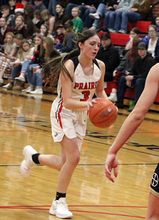 and on Friday, Dec. 20, they beat Logos 91-12 at Cottonwood. At Kamiah In the game against Kamiah, Prairie never trailed but they didn’t really pull away from the Kubs until the second half.Hailey Hanson started the scoring with a free throw. When she missed the second one, Kylie Schumacher rebounded and scored to make it 3-0. After Kamiah scored, Kylie Schumacher scored another put back then a steal by Hanson led to a lay-up by Lexi Schumacher. Lexi then hit a 3 to make it 10-2. After a second Kamiah basket, Hanson sank a 3 to make it 13-4. Kamiah scored a basket to make it 13-6 at the end of the first quarter. Kamiah opened the second quarter with 4 free throws to pull within 3 at 13-10. Prairie then scored 8 straight points to take their first double digit lead. Sage Elven stole the ball and scored a lay-up. Kylie Schumacher converted a 3-point play and Lexi Schumacher sank her second 3 of the game to make it 21-10. After 4 Kamiah points, Ellie Nuxoll scored a pair of free throws. After a Kamiah basket, Prairie closed out the half with 6 straight points. Elven made 2 free throws, Nuxoll scored a putback and Mia Anderson banked in a 16 footer. That made it 29-16 at the half. Prairie dominated the third quarter, outscoring Kamiah 14-3. Sydney Shears and Kylie Schumacher each scored to open the quarter. After a basket by Kamiah, Prairie scored 9 straight points. Lexi Schumacher scored after a steal. Elven scored in close. Lexi added another basket and Nuxoll scored a putback after a Kamiah free throw, Kylie Schumacher scored to make it 43-19 after 3 quarters. Kamiah scored to open the fourth quarter then Nadia Cash scored a short bank shot. Kamiah scored 5 straight points but Prairie answered with 7 straight. Lexi Schumacher scored a lay-up and Elven scored a pair of putbacks, adding a free throw after the second for a 3-point play. Kamiah scored a pair of baskets and Cash closed out the scoring with a drive for a lay-up. Lexi Schumacher scored 14 to lead all scorers. Elven had a double-double with 11 points and 15 rebounds. Kylie Schumacher almost had a double-double as well with 11 points and 9 rebounds. Nuxoll scored 6 with Hanson and Cash scoring 4 each and Shears and Anderson 2 each. Prairie had a 45-33 edge on the boards. Lexi Schumacher had 6 steals and 3 assist. Kylie Schumacher had 5 steals and Elven had 4. Hanson had 5 assists to lead the team. Prairie was 22 for 70 from the field, 31%, and 7 for 11 at the line, 64%. Kamiah was 11 for 33 from the field, 33%, and 8 for 18 at the line, 44%. There was no JV game. Prairie 13 16 14 11 -54 Kamiah 6 10 3 11 -30 Prairie-L. Schumacher 6-20, 0-0, 14; Shears 1-7, 0-0, 2; Hanson 1-9, 1-2, 4; Elven 4-17, 3-3, 11; K. Schumacher 5-10, 1-1, 11; Cash 2-3, 0-1, 4; Nuxoll 2-3, 2-3, 6; Anderson 1-1, 0-0, 2; Rehder 0-0, 0-0, 0. 3-pointers-L Schumacher 2, Hanson. Kamiah-Krogh 2-10, 5-6, 9; E. Puckett 0-2, 0-2, 0; Campbell 4-9, 1-1, 9; Hunt 2-4, 2-6, 6; Skinner 0-0, 0-0, 0; A. Puckett 3-8, 0-3, 6; Fredericksen 0-0, 0-0, 0; Brown 0-0, 0-0, 0. 3-pointers-none. Vs. Logos The game with Logos was a