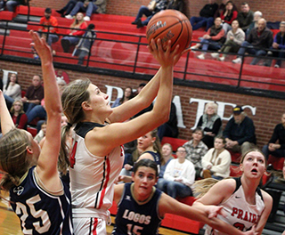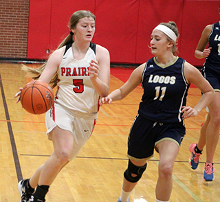 and the Knights were never in the game.![]() Prairie started with a 12-0 run. Kylie Schumacher scored first then Elven added a pair of baskets. A basket each by Lexi Schumacher, Shears and Elven made it 12-0. Logos finally scored at the 4:06 mark. Prairie then scored 7 straight, 3 by Elven and 2 each by Kylie and Lexi Schumacher. After a second Logos baskets. Prairie ended the first quarter with a 13-0 run. Lexi Schumacher started it with a 3. Next was a reverse lay-up by Shears, a lay-up by Cash, and 3 lay-ups by Lexi Schumacher to make it 32-4 at the end of the first quarter. Logos scored the first points of the second quarter at the 7:25 mark and then didn’t score again until the 7:18 mark of the fourth quarter. Prairie closed out the half with a 21-0 run for a 53-6 halftime lead. Lexi Schumacher scored 8 to give her 21 points at halftime. Hanson added 6 points, Nuxoll 3 and Shears and Aubree Rehder 2 each. Prairie outscored Logos 24-0 in the third quarter. Lexi Schumacher scored 5, including a 3-pointer. Shears scored 2 free throws and a basket while Elven and Rehder each had 2 baskets for 4 points each. Hanson hit a 3 and Cash and Nuxoll added 2 points each. Logos scored the first 5 points of the fourth quarter for their only time in the game with more than 1 basket. Lexi Schumacher scored a lay-up then Logos scored their final point at the free throw line. Prairie closed the game with a 12-0 run. Kylie Schumacher scored a lay-up. Rehder scored a lay-up. Lexi Schumacher converted a 3-point play and added a lay-up. Kylie then scored a basket and a free throw to put Prairie over 90 points. Lexi Schumacher scored 33 to lead all scorers. Elven and Shears were also in double figures with 13 and 10 points respectively. Hanson and Kylie Schumacher scored 9 each. Rehder scored 8. Nuxoll scored 5 and Cash scored 4. Prairie had a 45-32 advantage on the boards led by Shears who nearly had her first ever double-double with 9 rebounds. Kylie Schumacher added 8 and Cash 7 rebounds. Elven had a double double with 10 steals while Shears added 5 steals. Prairie totaled 29 assists in the game led by Elven with 7 while Hanson and Nuxoll had 5 each. Prairie was 41 for 71 from the field, 58%, and 6 for 12 at the line, 50%. Logos was 5 for 49 from the field, 10%, and 2 for 3 at the line, 67%. Prairie finishes 2024 with a record 8-1, 5-0 in league play. Again, there was no JV game. Prairie 32 22 24 14 -91 Logos 4 2 0 6 -12 Prairie-L. Schumacher 15-23, 111, 33; Shears 4-7, 2-2, 10; Hanson 4-10, 0-0, 9; Elven 6-9, 1-1, 13; K. Schumacher 4-7, 1-3, 9; Cash 2-5, 0-2, 4; Rehder 4-5, 0-0, 8; Nuxoll2-4, 1-3, 5; Kalmbach 0-1, 0-0, 0. 3-pointers-L. Schumacher 2, Hanson. Logos-Taylor 2-13, 1-1, 5; Driskill 2-9, 0-0, 4; Porras 0-5, 1-2, 1; Bowen 0-1, 0-0, 0; Wilson 1-6, 0-0, 2; Rench 0-6, 0-0, 0; Doane 0-9, 0-0, 0. 3-pointers-none. ![]() Aubree Rehder handles the ball against Logos. ![]() Ellie Nuxoll goes for a lay-up against Logos. Also shown is Kylie Schumacher. ![]() Hailey Hanson handles the ball against Logos. ![]() Kadence Kalmbach looks to pass against Logos. ![]() Sydney Shears goes for a lay-up against Logos. UPDATED PIRATES GIRLS BASKETBALLSCHEDULE FOR 2024-25 JV games start at 6 p.m., varsity to follow unless indicated.