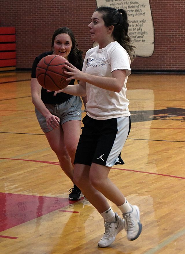 ![]() 8 Prairie grads showed up for the women’s alumni game. From left are Kristin Wemhoff, Krystin Uhlenkott Schlader, Leah Higgins, Tara Schlader, Hope Schwartz, Madison Shears, Laney Forsmann and Ali Rehder. Photo by Jim Rehder. ![]() Ali Rehder looks to pass as she is guarded by Madison Shears. Photo by Jon Rehder. ![]() Kristin Wemhoff sites in a 3-pointer. Also shown is Jim Rehder who helped out by officiating the games. Photo by David Rauzi. ![]() Ali Rehder pulls up for a shot as Krystin Schlader races over to play defense. Photo by David Rauzi. ![]() Leah Higgins looks to shoot as Hope Schwartz guards her. Photo by David Rauzi. ![]() Krystin Schlader with the ball gets doubleteamed by Ali Rehder and Hope Schwartz. In the background is Kristin Wemhoff. Photo by David Rauzi. ![]() Laney Forsmann appears to be fouling Krystin Schlader on this play. Also shown are Leah Higgins at left and Madison Shears at right. Photo by David Rauzi. ![]() Madison Shears puts up a 3-point shot. At left are Laney Forsmann and Ali Rehder. Photo by Jon Rehder. UPDATED PIRATES GIRLS BASKETBALLSCHEDULE FOR 2024-25 JV games start at 6 p.m., varsity to follow unless indicated.