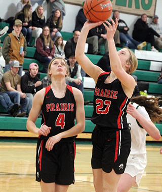 Jan. 10. ![]() Potlatch lost 69-14 the first time they played Prairie but this time they were down to just 6 players and were missing a pair of seniors that played back in November. Prairie outscored the Loggers 25-0 in the first quarter as Lexi Schumacher racked up 13 points while hitting 6 of 9 shots. Sage Elven added 6 points while Hailey Hanson and Kylie Schumacher scored 3 each. Prairie forced 17 turnovers in the opening quarter leading to a lot of easy transition baskets. In the second quarter they eased off on the defense. Kylie Schumacher scored a putback and Elven scored a pair of baskets to put Prairie up 31-0 before Potlatch finally dented the scoreboard with a basket at the 5:54 mark. Lexi Schumacher, Ellie Nuxoll and Elven each added a basket to make it 37-2 at the half. Prairie then scored the first 21 points of the third quarter making it a 27-0 run. Elven scored 6 in that 21-0 run with Lexi Schumacher adding 5 and Hanson 3. Kylie Schumacher, Aubree Rehder and Mia Anderson scored 2 each and Sydney Shears 1. Potlatch finally scored again with 2 free throws at the 43 second mark. Nuxoll and Lexi Schumacher then each scored a basket to make it 62-4 after 3 quarters. Hanson scored to open the fourth quarter, which was played with a running clock. Potlatch then scored their final points of the game at the 4:52 mark. Prairie then scored the final 14 points of the game. Kylie Schumacher scored 8 of those and Lexi Schumacher the other 6. Lexi Schumacher wound up with 28 points, which put her over 1000 points in her career. Elven scored 18 with Kylie Schumacher adding 15, Hanson 8, Nuxoll 4, Rehder and Anderson 2 each and Shears 1. Prairie doubled up Potlatch on the boards, 46-23. Elven had 9 to lead the Pirates with Kylie Schumacher adding 8 rebounds. Lexi Schumacher had a double-double as she had 11 steals in the game. Hanson added 8 steals. 9 different players had a steal out of the 11 that saw playing time. Shears had 4 assists while Lexi Schumacher had 3. 8 different players had at least 1 assist. Prairie was 36 for 77 from the field, 47%, and 2 for 4 at the line, 50%. Potlatch was 2 for 27 from the field, 7%, and 2 for 2 at the line. Prairie is now 9-1 on the season and 6-0 in league play. Prairie 25 12 25 16 -78 Potlatch 0 2 2 2 - 6 Prairie-L. Schumacher 13-25, 0-0, 28; Shears 0-1, 1-2, 1; Hanson 3-5, 0-0, 8; Elven 9-18, 0-0, 18; K. Schumacher 7-11, 1-2, 15; Nuxoll 2-4, 0-0, 4; Cash 0-2, 0-0 0; Rehder 1-5, 0-0, 2; Anderson 1-5, 0-0, 2; Schlader 0-1, 0-0, 0; Kalmbach 0-0, 0-0, 0. 3-pointers-Hanson 2, L. Schumacher 2. Potlatch-Sawyer 0-5, 0-0, 0; Vowels 1-7, 2-2, 4; Cessnan 0-6, 0-0, 0; Carlson 1-5, 0-0, 2; Zimms 0-6, 0-0, 0; Taylor 0-0, 0-0, 0. 3-pointers-none. ![]() Erica Schlader puts up a shot at Potlatch as Sydney Shears looks on. ![]() Kylie Schumacher puts up a shot at Potlatch. ![]() Lexi Schumacher shoots for 3 at Potlatch. ![]() Mia Anderson sites in a 3-point shot as Aubree Rehder looks on. UPDATED PIRATES GIRLS BASKETBALLSCHEDULE FOR 2024-25 JV games start at 6 p.m., varsity to follow unless indicated.