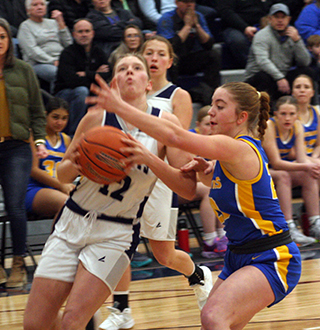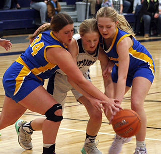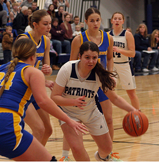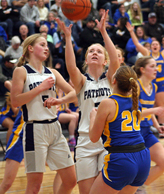 Nezperce then pulled away in the fourth outscoring the Patriots 12-17.Cody Weckman led the Patriots in scoring with 18 points. Nathan Wassmuth was also in double figures with 10. Wyatt Crea scored 7, Connor Nuxoll 4, Tommy Rose 3 and Henry Baldwin 2. The JV team won their 2-quarter game against the Nighthawks. SJB 7 13 12 12 -44 Nezperce 16 13 10 17 -56 SJB-Frei 0, 0-2, 0; Hagen 0, 0-0, 0; Crea 3, 0-0, 7; Rose 1, 1-4, 3; Weckman 7, 4-6, 18; Baldwin 1, 0-0, 2; Wassmuth 4, 2-4, 10; Nuxoll 1, 2-2, 4. 3-pointers-Crea. Nezperce-Kuther 4, 0-0, 8; Ingram 0, 0-0, 0; Cronce 4, 1-1, 9; C. Williams 3, 4-6, 11; B. McLeod 1, 3-4, 5; A. McLeod 4, 0-2, 9; Wilcox 3, 1-2, 10; J. Williams 2, 0-0, 4. 3-pointers-Wilcox 3, C. Williams, A. McLeod. Girls at Timberline The only information we have on the girls game at Timberline is that they won 56-30.The Lady Patriots are now 4-5 on the season and 2-5 in league play. Boys at Timberline It was a closer game this time around against Timberline.The two teams were tied at the end of the first quarter and Bosco outscored the Spartans in the second, 15-12, to take a 26-23 halftime lead. Timberline came out strong in the third quarter, outscoring the Patriots 9-18 to take a 35-41 lead into the fourth quarter. The Patriots outscored the Spartans in the fourth quarter but only by 1 point, 12-11. Weckman and Wassmuth again were the big scorers for Bosco as Weckman scored 18 and Wassmuth 17. Rose scored 5, Zack Murdock, Baldwin and Nuxoll 2 each and Crea 1. The Patriots are now 1-10 on the season and 1-7 in league play. The JV team lost their 2 quarter game 12-24. SJB 11 15 9 12 -47 Timberline 11 12 18 11 -52 SJB-Frei 0, 0-0, 0; Hagen 0, 0-0, 0; Crea 0, 1-4, 1; Rose 2, 1-2, 5; Weckman 7, 2-4, 18; Baldwin 1, 0-0, 2; I. Parmentier 0, 0-2, 0; Murdock 1, 0-0, 2; Wassmuth 7, 3-4, 17; Nuxoll 1, 0-0, 2; G. Parmentier 0, 0-0, 0. 3-pointers-Weckman 2. Timberline-Mabberly 1, 2-2, 4; Hunter 1, 0-0, 3; Hueth 2, 0-0, 5; Marshall 0, 0-0, 0; Christopherson 6, 5-10, 18; Hodges, 0, 3-6, 3; Richardson 7, 5-5, 19. 3-pointers-Hunter, Hueth, Christopherson. ![]() Catherine Seubert battles two Nezperce players for a loose ball. ![]() CeCe Remacle handles the ball against Nezperce. Also shown is Noelle Chmelik. ![]() Julia Wassmuth goes for a lay-up against Nezperce. Behind her is Noelle Chmelik. ![]() Rachel Sonnen goes after a rebound as Catherine Seubert looks on. ![]() Cody Weckman drives past a Nezperce defender. ![]() Connor Nuxoll and Nathan Wassmtuh defend against Nezperce. ![]() Nathan Wassmuth blocks out for a rebound against Nezperce. In the background is Wyatt Crea. Photos by Steve Wherry of the Lewis County Herald. NOVEMBER 19-Girls vs. C.V., lost 30-3823-Girls vs. Logos, JV/V, 1 p.m. DECEMBER 3-Girls/Boys vs. Timberline*, 4 p.m.4-Girls against Clarkston Frosh & JV, 6 p.m., Girls varsity won 48-47 5-Girls/Boys at Nezperce*, 4:30 p.m. 10-Girls/Boys at Deary*, 4 p.m. 16-Boys at C.V.*, 6 p.m. 17-Girls/Boys vs. Highland*, 5 p.m. 19-Girls/Boys at Genesee*, 4 p.m. JANUARY 2-Boys vsl Logos at Lapwai Tournament at Lapwai High School, 5 p.m., lost 17-1013-Boys vs. Lapwai at Lapwai Tournament at Lapwai High School, 6:30 p.m., lost 38-84 4-Boys vs.Salmon River at Lapwai Tournament at Logos High School, 1 p.m. 7-Girls/Boys vs. Nezperce*, 4 p.m. 9-Girls/Boys at Timberline*, 4 p.m. 14-Girls/Boys vs. Deary*, 4 p.m. 16-Girls/Boys at Clarkston JV, 4 p.m. 17-Boys vs. C.V.*, 6 p.m. 21-Girls/Boys at Highland*, 5 p.m. 23-Girls/Boys vs. Genesee*, 4 p.m. FEBRUARY 3-Girls/Boys at Logos, V only, 6 p.m.8-13-Girls District Tournament, First round loser-out at Higher Seed, rest at Lapwai 16-Girls Play-In game at Post Falls 20-22-Girls State Tournament at Nampa High School 22-27-Boys District, first round loser out at higher seed, rest at Lapwai March 1-Boys Play-In game at Post Falls March 6-8-Boys State Tournament at Caldwell High School Timberline will have ½ JV girls and ½ JV boys; Highland has no girls JV and ½ JV boys; Genesee has ½ girls JV Game times may change |