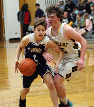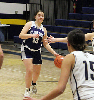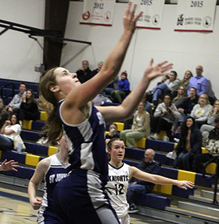 Patriots boys win twice, girls win 1 of 3 The St. John Bosco boys basketball team put together their first winning streak of the season as they won at Highland 35-27 on Tuesday, Jan. 21 and defeated Genesee 69-64 at Cottonwood on Thursday, Jan. 23. Meanwhile the girls won 1 of their 3 games. They started the week with a 40-32 win at Highland on Tuesday, Jan. 21. On Thursday, Jan. 23 they lost to Genesee 36-61 at Cottonwood. Finally on Friday, Jan. 24, they traveled to Moscow where they lost in double overtime to Logos 50-55. There was a boys game set against the Logos JV but it may be rescheduled. Girls at Highland Against Highland the Lady Patriots avenged a 2-point loss to the Huskies from earlier in the season.Bosco led 11-9 after the first quarter and 20-17 at the half. They outscored the Huskies 13-5 in the third quarter to take a 33-22 lead into the fourth quarter. They then withstood a Highland rally for the 8 point win. Julia Wassmuth scored 17 points to lead the Patriots. CeCe Remacle added 9 points with Catherine Seubert, Noelle Chmelik and Sarah Waters adding 4 each and Miah Mager scored 2. St. John Bosco 11 9 13 7 -40 Highland 9 8 5 10 -32 SJB-Sonnen 0, 0-0, 0; Seubert 2, 0-0, 4; Schoo 0, 0-0, 0; 0, 0-0, 0;J. Wassmuth 8, 0-0, 17; Remacle 4, 0-0, 9; Chmelik 2, 0-0, 4; Nuxoll 0, 0-0, 0; M. Wassmuth 0, 0-0, 0; Mager 1, 0-0, 2; Waters 1, 2-6, 4; Beckman 0, 0-0, 0. 3-pointers-J. Wassmuth Highland-Moddrell 1, 2-4, 4;Finnell 0, 0-0, 0; Click 0, 0-0, 0; K. Beck 5, 0-2, 10; Shy. Stamper 0, 0-0, 0; H. Beck 2, 0-0, 6; Sher. Stamper 3, 0-0, 8; Bovey 2, 0-0, 4; Thacker 0, 0-0, 0. 3-pointers-Sher. Stamper 2, H. Beck 2. Boys at Highland The Patriots made it a season sweep over the Huskies as they picked up their second win of the season.The score was tied 4-4 at the end of the first quarter but Highland outscored Bosco 9-15 in the second to take a 13-19 lead at halftime. Bosco cut into the lead in the third quarter, outscoring Highland 8-4, but still trailed 21-23 heading into the fourth. In the final period the Patriots outscored the Huskies 14-4 as they came from behind to win it. Cody Weckman led the Patriots in scoring with 12 points. Ignatius Parmentier scored 8, Connor Nuxoll 7, Henry Baldwin 4 and Wyatt Crea and Tommy Rose 2 each. Weckman had 6 steals and Nuxoll had 9 rebounds. Bosco also won the JV game 28-10. SJB 4 9 8 14 -35 Highland 4 15 4 4 -27 SJB-Frei 0, 0-0, 0; Hagen 0, 0-0, 0; Crea 1, 0-2, 2; Rose 1, 0-0, 2; Weckman 4, 2-4, 12; Baldwin 2, 0-0, 4; Parmentier 2, 3-4, 8; Wassmuth 0, 0-0, 0; Nuxoll 2, 3-6, 7. 3-pointers-Weckman 2, Parmentier. Highland-Smith 1, 0-2, 2; Knowlton 4, 1-2, 9; Kinzer 0, 0-0, 0; Crow 6, 1-2, 13; Miller 1, 1-2, 3; Wiley 0, 0-0, 0; Martinson 0, 0-0, 0. 3-pointers-none Girls at Genesee The Lady Patriots kept it close in the first half but Genesee pulled away in the second.Bosco trailed 8-14 after one quarter and 19-25 at the half after an 11-11 second quarter. Genesee rolled up a 12-26 advantage in the third quarter to take a 31-51 lead into the fourth. They outscored the Patriots 5-10 in the fourth. Wassmuth led the Patriots with 19 points with Seubert scoring 6, Savannah Perrin 4, Chmelik and Waters 3 each and Remacle. 1. St. John Bosco 8 11 12 5 -36 Genesee 14 11 26 10 -61 SJB-Sonnen 0, 0-0, 0; Seubert 3, 0-0, 6; Perrin 2, 0-0, 4;J. Wassmuth 8, 1-2, 19; Remacle 0, 1-2, 1; Chmelik 1, 1-3, 3; M. Wassmuth 0, 0-0, 0; Mager 0, 0-0, 0; Waters 0, 3-8, 3; Beckman 0, 0-0, 0. 3-pointers-Wassmtuh 2. Genesee-Banks 0, 1-4, 1; Seubert 5, 0-0, 12; Wareham 2, 0-0, 4; Baysinger 0, 0-4, 0; M. Grieser 2, 1-2, 6; C. Grieser 8, 4-5, 25; Meyer 4, 0-2, 11; Johnson 0, 2-4, 2; Herman 0, 0-0, 0; White 0, 0-0, 0. 3-pointers-C. Grieser 3, Meyer 3, Seubert, M. Grieser Boys vs. Genesee Against Genesee the Patriots picked up their third win of the season. Genesee jumped out to a 12-24 lead by the end of the first quarter. Bosco answered back by outscoring them 22-8 in the second quarter to take a 34-32 lead at the half. The Patriots outscored the Bulldogs 20-9 in the third quarter to take a 54-41 lead into the fourth. Genese rallied, outscoring the Patriots 15-23 in the fourth but fell short. Weckman led the Patriots in scoring with 21 points while Nathan Wassmuth and Rose added 15 points each. Crea scored 7, Nuxoll 6, Baldwin 3 and Simon Hagen 2.S With the win the Patriots improve to 3-9 in league play and 3-12 overall. Genesee won the 2-quarter JV game. St. John Bosco 12 22 20 15 -69 Genesee 24 8 9 23 -64 SJB-Frei 0, 0-0, 0; Hagen 1, 0-0, 2; Crea 3, 0-0, 7; Rose 5, 2-2, 15; Weckman 7, 4-7, 21; Baldwin 1, 1-2, 3; Parmentier 0, 0-0, 0; Wassmuth 7, 1-1, 15; Nuxoll 3, 0-0, 6. 3-pointers-Rose 3, Weckman 3, Crea. Genesee-Crowley 3, 2-4, 8; Bollman 10, 12-12, 34; Uhlenkott 0, 0-0, 0; Banks 2, 5-6, 10; Cass 0, 0-0, 0; Rector 1, 1-2, 4; Chapman 0, 0-0, 0;Ketcheson 3, 2-8, 8. 3-pointers-Bollman 2, Banks, Rector Girls at Logos The girls game at Logos was close all the way through.![]() Bosco jumped out to an 8-0 lead. Julia Wassmuth got things started with a steal that led to a lay-up. Seubert scored a putback. Wassmuth scored again and the Miah Mager scored to make it 8-0. Logos came right back with 6 straight points before Wassmuth ended the first quarter with a basket for a 10-6 lead. Waters scored a putback to open the second quarter then Logos went on a 0-8 run to take their first lead at 12-14. Remacle put Bosco back in the lead with a 3-pointer that made it 15-14. Chmelik and Wassmuth each scored to make it 19-14. Logos then scored a 3 right before the buzzer to make it 19-17 at the half. Logos scored the first 4 points of the third quarter to retake the lead. Perrin then scored to tie it and Wassmuth banked in a 3-pointer to put Bosco back on top. Logos tied it with a 3 but a free throw and a basket by Seubert made it 27-24. Logos made 2 of 4 free throws to cut the lead to 1 at the end of the third quarter. Logos then scored 2 baskets to retake the lead. A basket by Chmelik cut the l